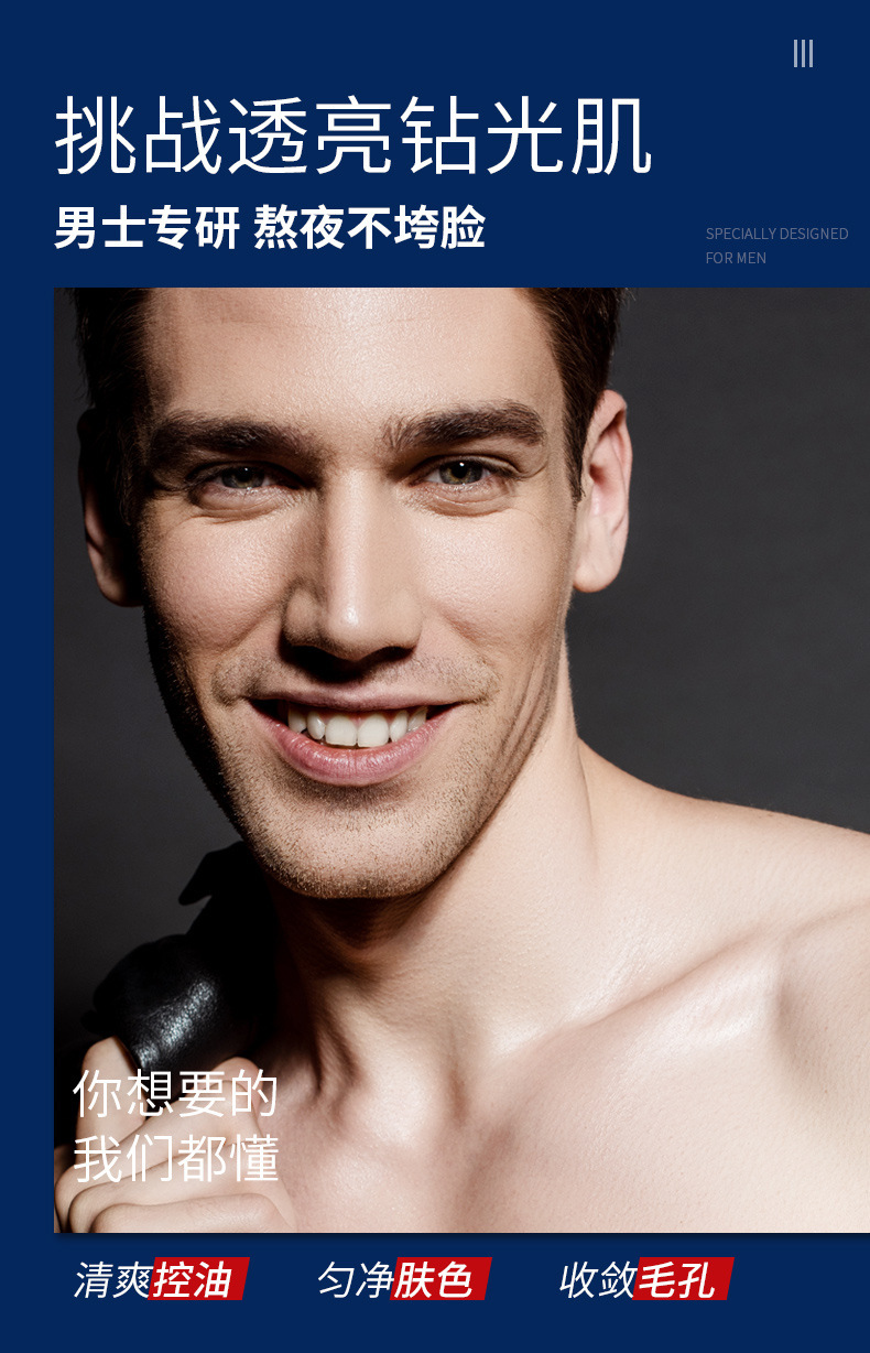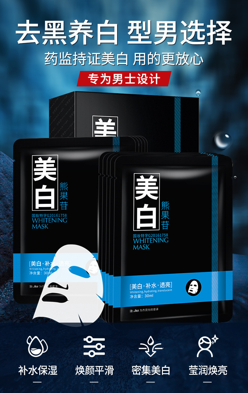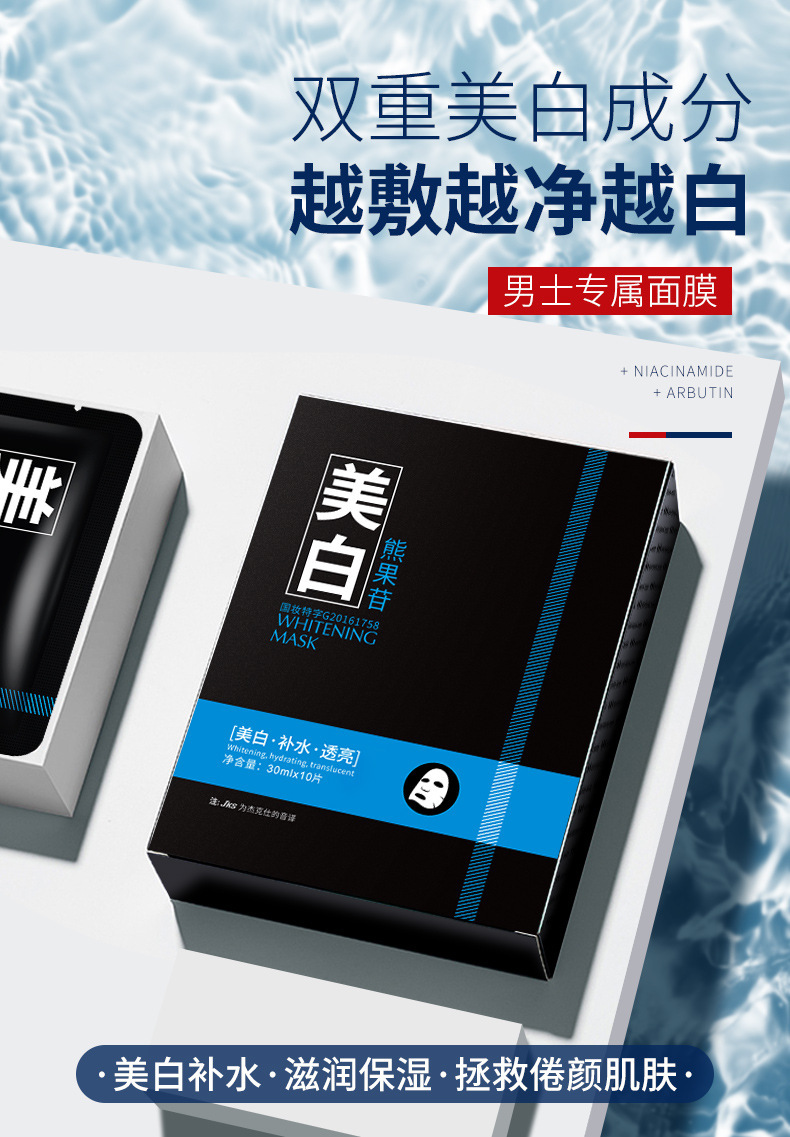 Мужская отбеливающая маска для лица в коробке, увлажняющая, освежающая, питательная, нежная и питающая, специально разработанная для мужских средств по уходу за кожей.