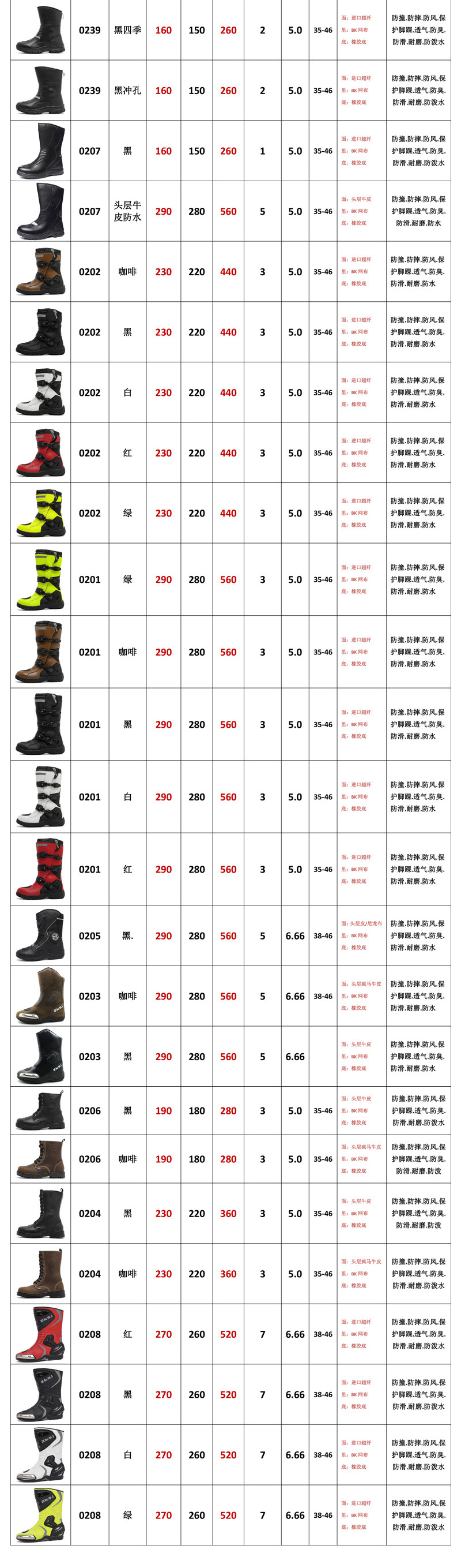 Серый 0220; Красный 0220; Зеленый 0220; Черный 0240 Череп; Красный 0240 Череп; Черный 0219; Серая железная пряжка 0232; Черная железная пряжка 0232; Синяя железная пряжка 0232; Серый 0236; Синий 0236; Черный 0236; Красная пряжка с повышенным натяжением 0227; Черная пряжка с повышенным натяжением 0227; Синяя пряжка с повышенным натяжением 0227; Черный 0231; Красный 0231; Серый 0231; Черный 0233; Красный 0233; Синий 0233; Армейский зеленый 0233; Черный 0234; Серый 0234; Синий 0234; Черный 0207; Черный 0241 Шэньчжэнь Iron Cavalry Edition; Черная модель 0207 из натуральной кожи первого слоя с водоотталкивающим покрытием; Черный 0239 Четыре сезона; Черная 0239 перфорированная дышащая летняя модель