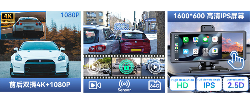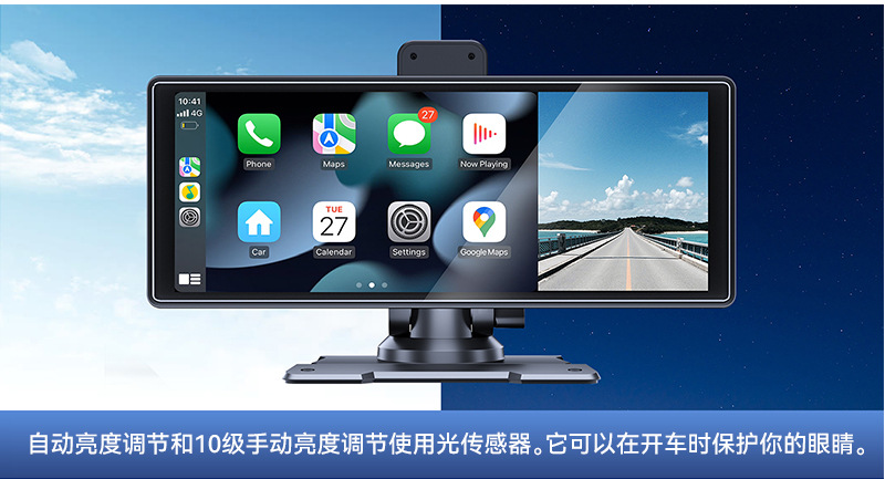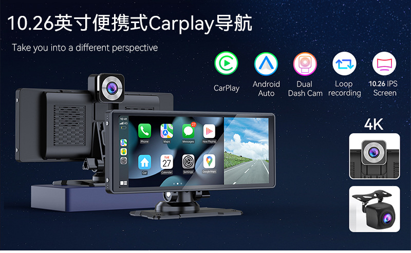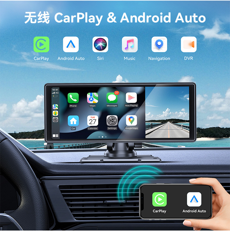 10.26-дюймовый видеорегистратор HD-реверс беспроводной Carplay портативный экран