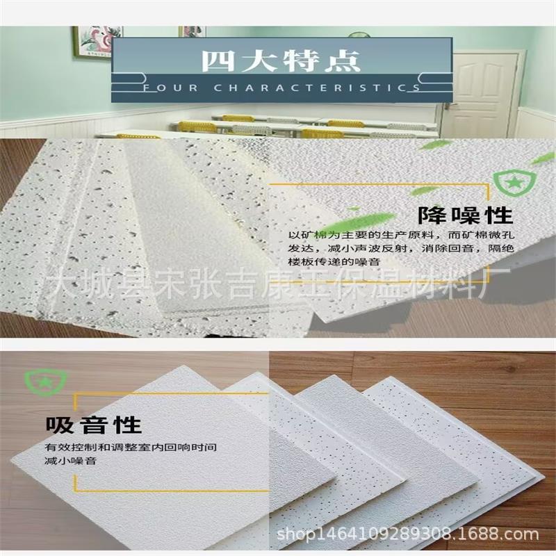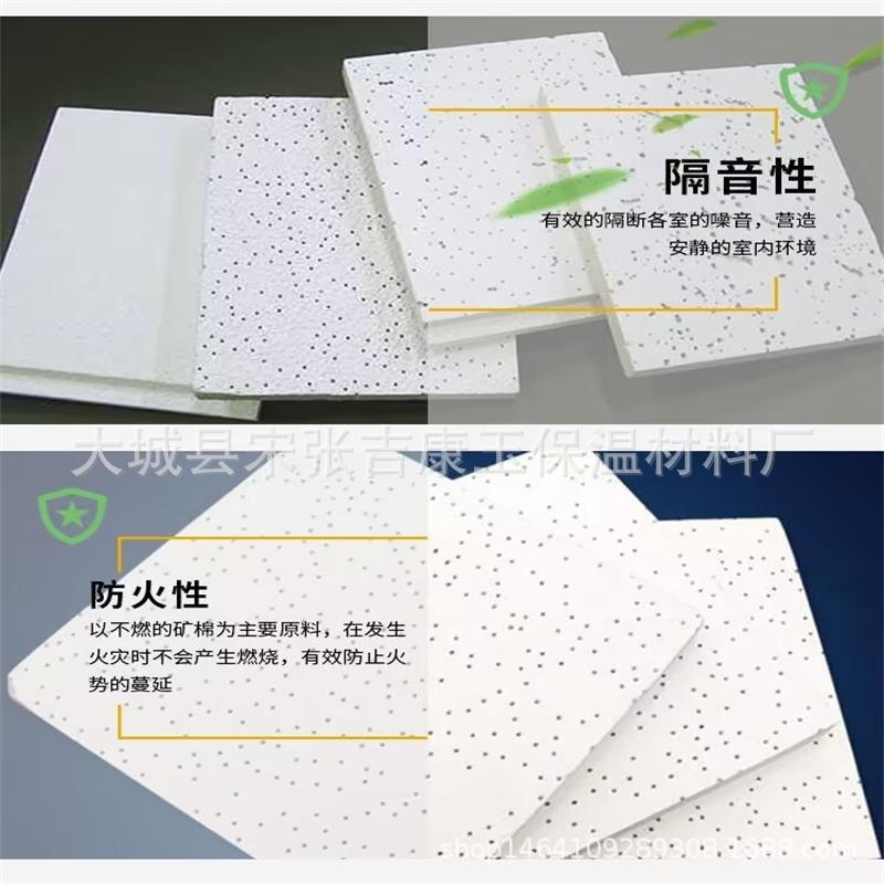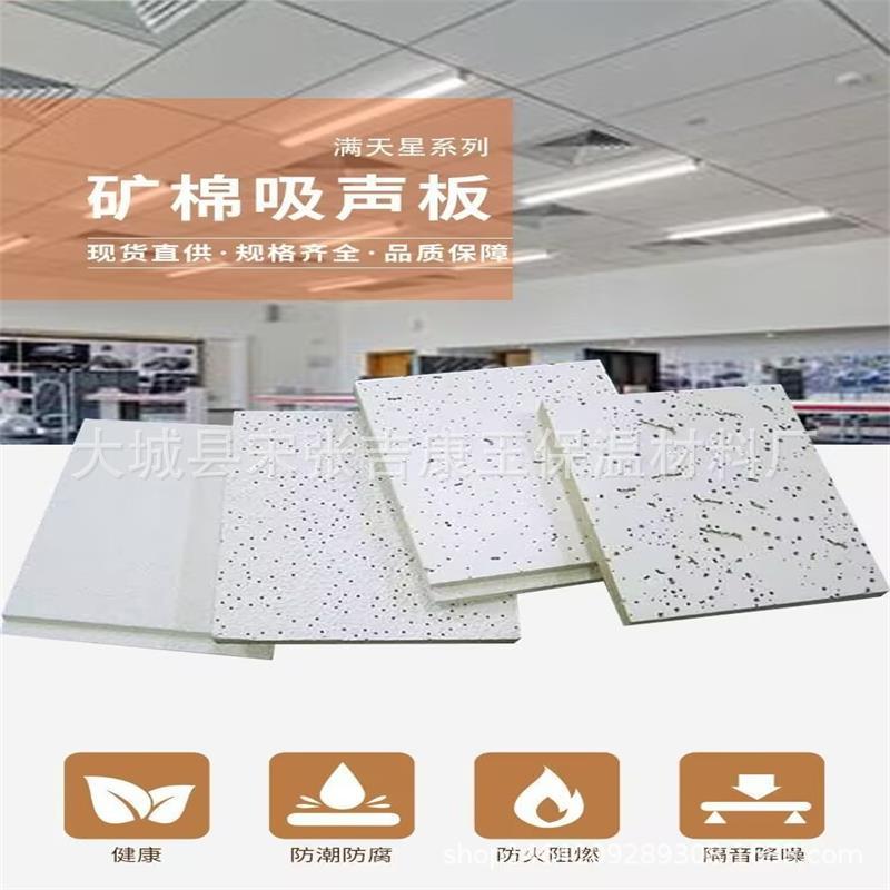 矿棉吸音板表面处理形式丰富,板材有较强的装饰效果。有多种表面处理方式,滚花、冲孔、覆膜、撒砂等,也可经过铣削成形的立体形矿棉板,表面制作成大小方块、不同宽窄条纹等形式。 还有一种浮雕型矿棉板,经过压模成形,表面图案精美,有中心花、十字花、核桃纹等造型,是一种很好的装饰用吊顶、墙面型材。