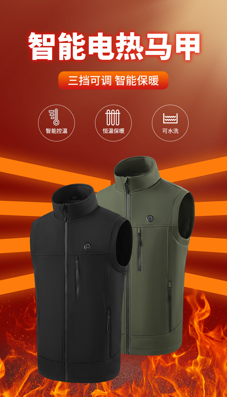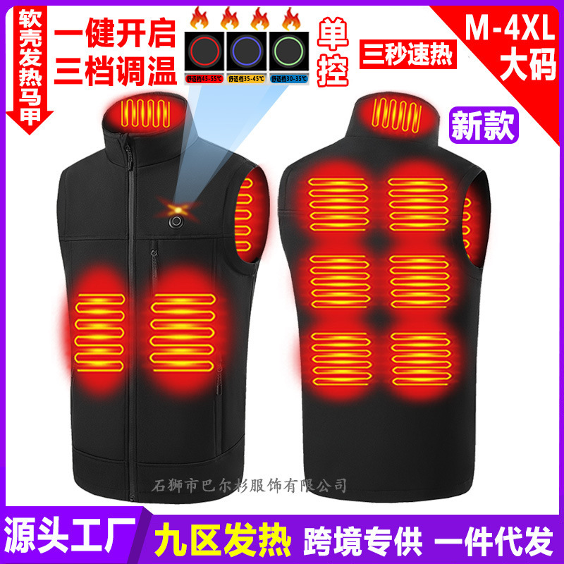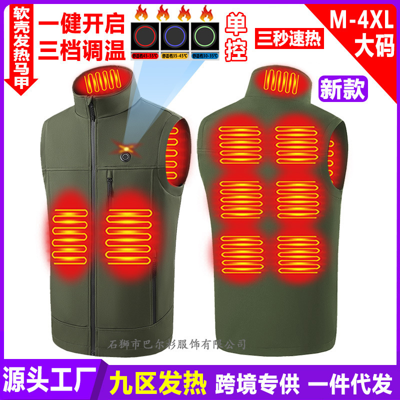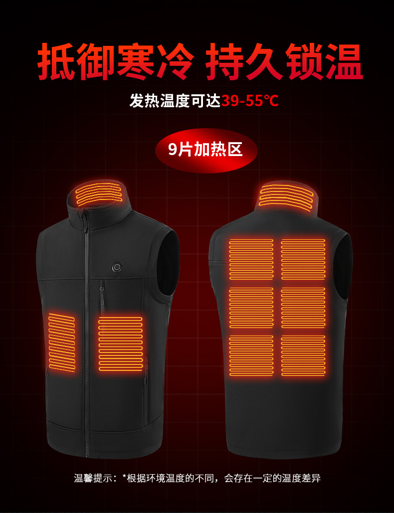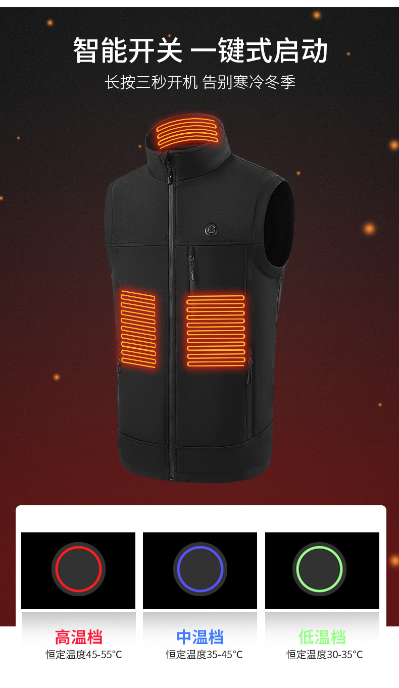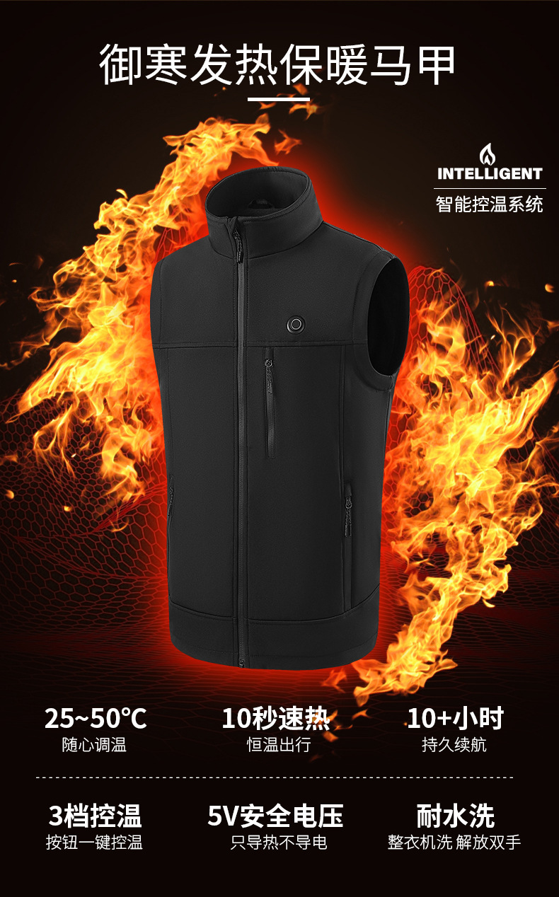 Трансграничная поставка нагревательного жилета большого размера с воротником-стойкой, электрический нагревательный жилет, хлопковый жилет, интеллектуальный нагревательный костюм с постоянной температурой, питаемый от USB