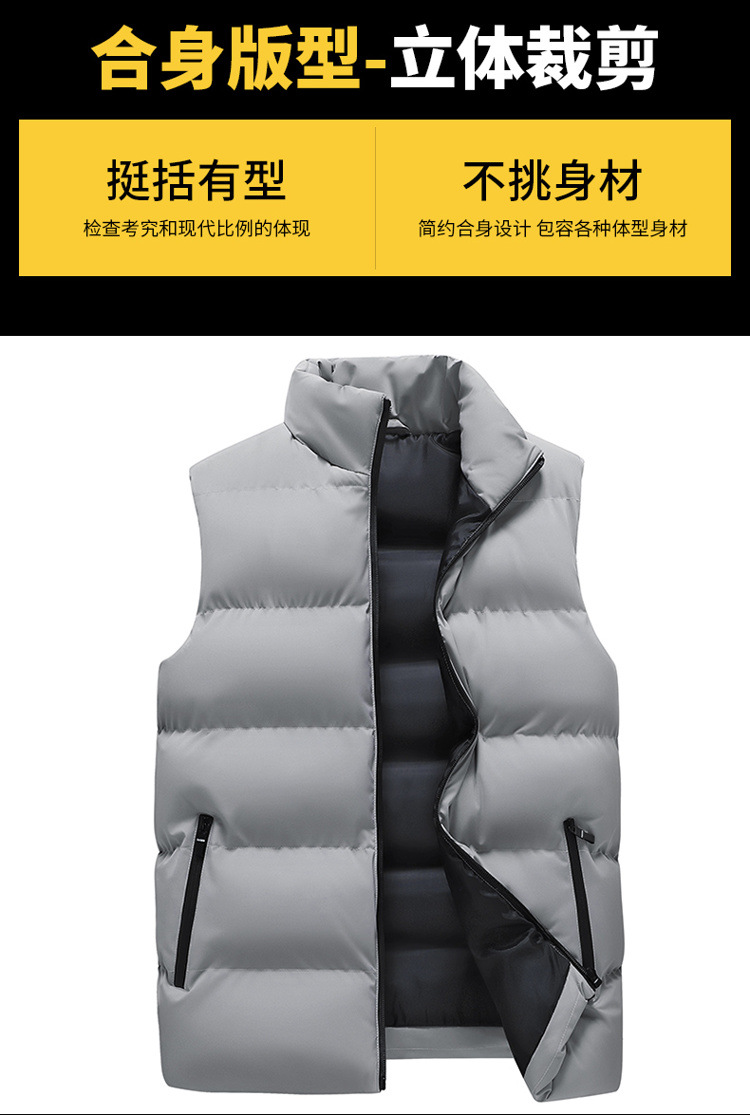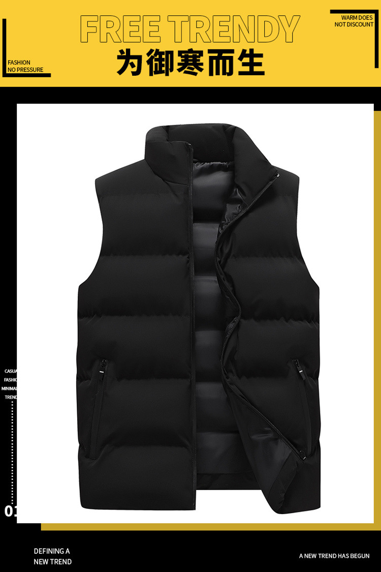 Жилет мужской зимний воротник тренд жилет плечи сплошной цвет мужская толстая куртка теплая без рукавов хлопчатобумажное платье