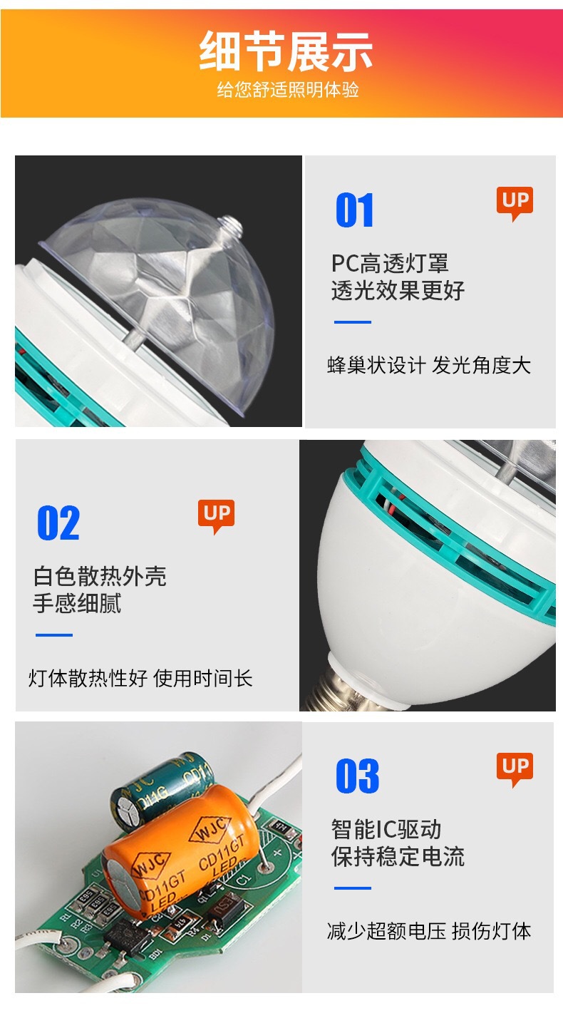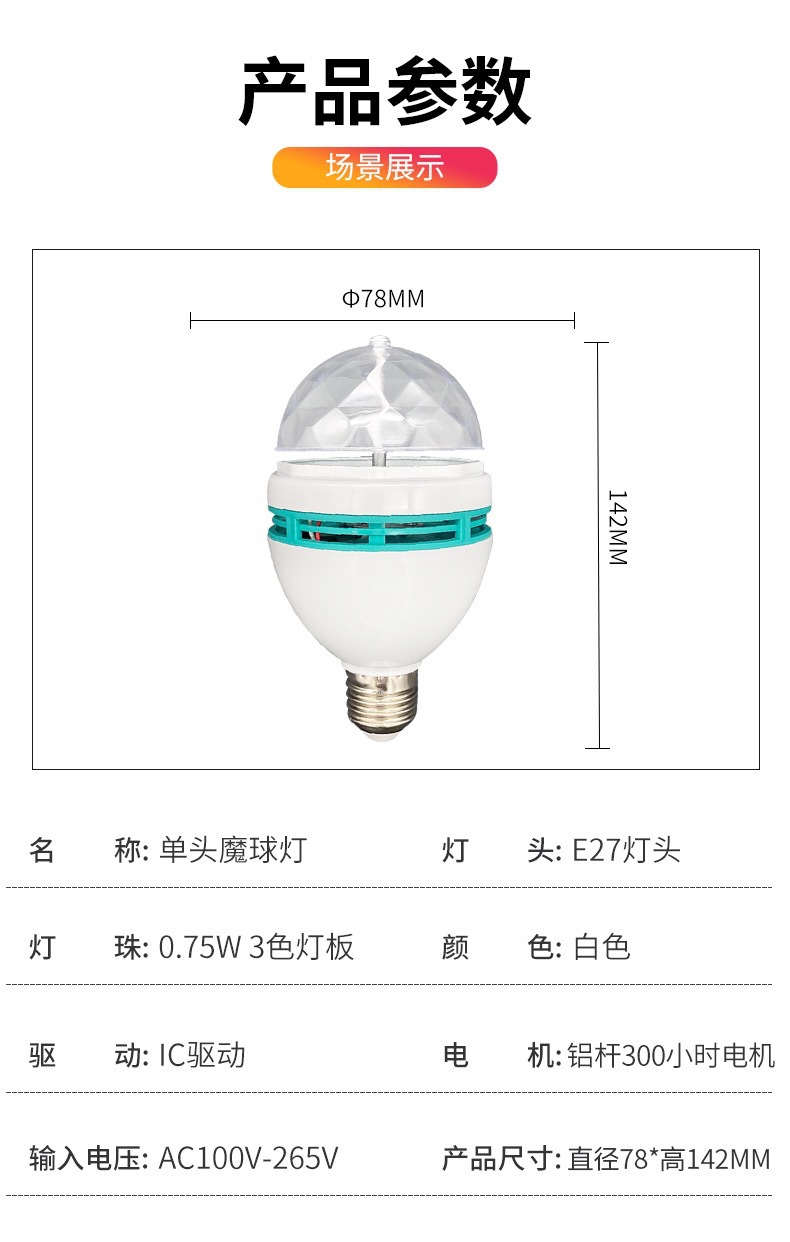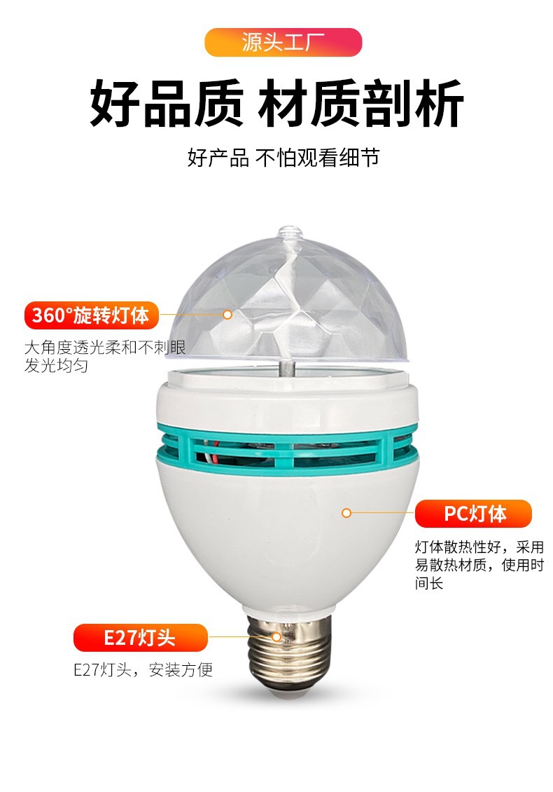 Трансграничный RGB Хрустальный волшебный шар красочный вращающийся домашний сценический свет украшение интерьера светодиодный свет E27 винт красочный свет
