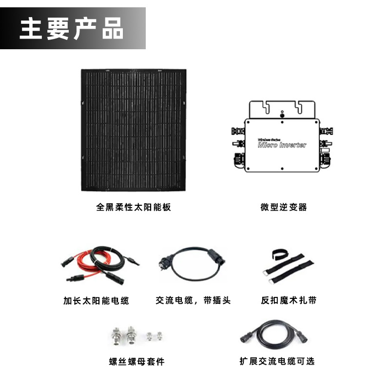 Солнечные гибкие фотоэлектрические панели для балкона с инвертором для подключения к сети, используемые в системах микроэнергетики для балконов.