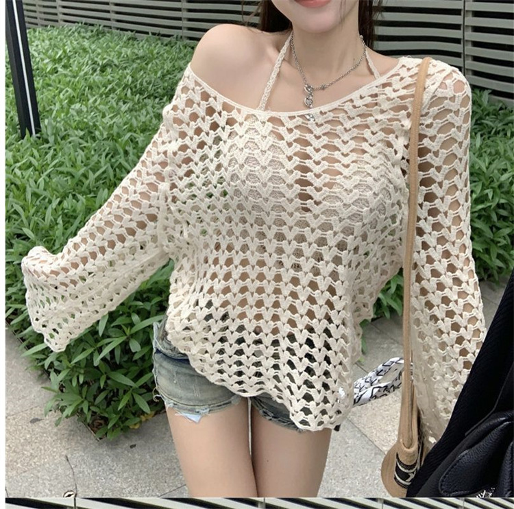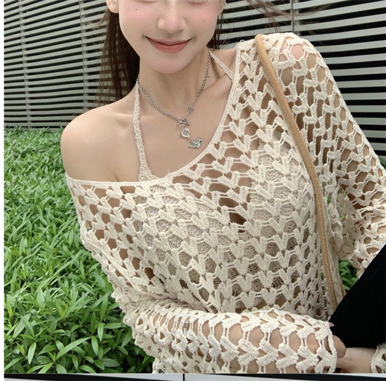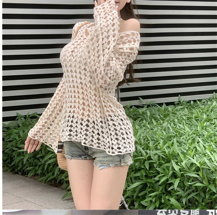Женский топ с длинными рукавами и вышивкой крючком, Женский Универсальный пуловер больших размеров, блузка-пуловер больших размеров, блузка, подходящая внешняя рубашка, летняя