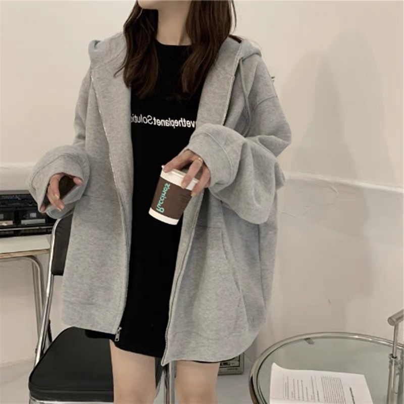 Lazy Style Jacket Новое поступление, Осень-зима, кардиган на молнии, универсальное Свободное пальто больших размеров с интернет-знаменитостями, Женский Топ