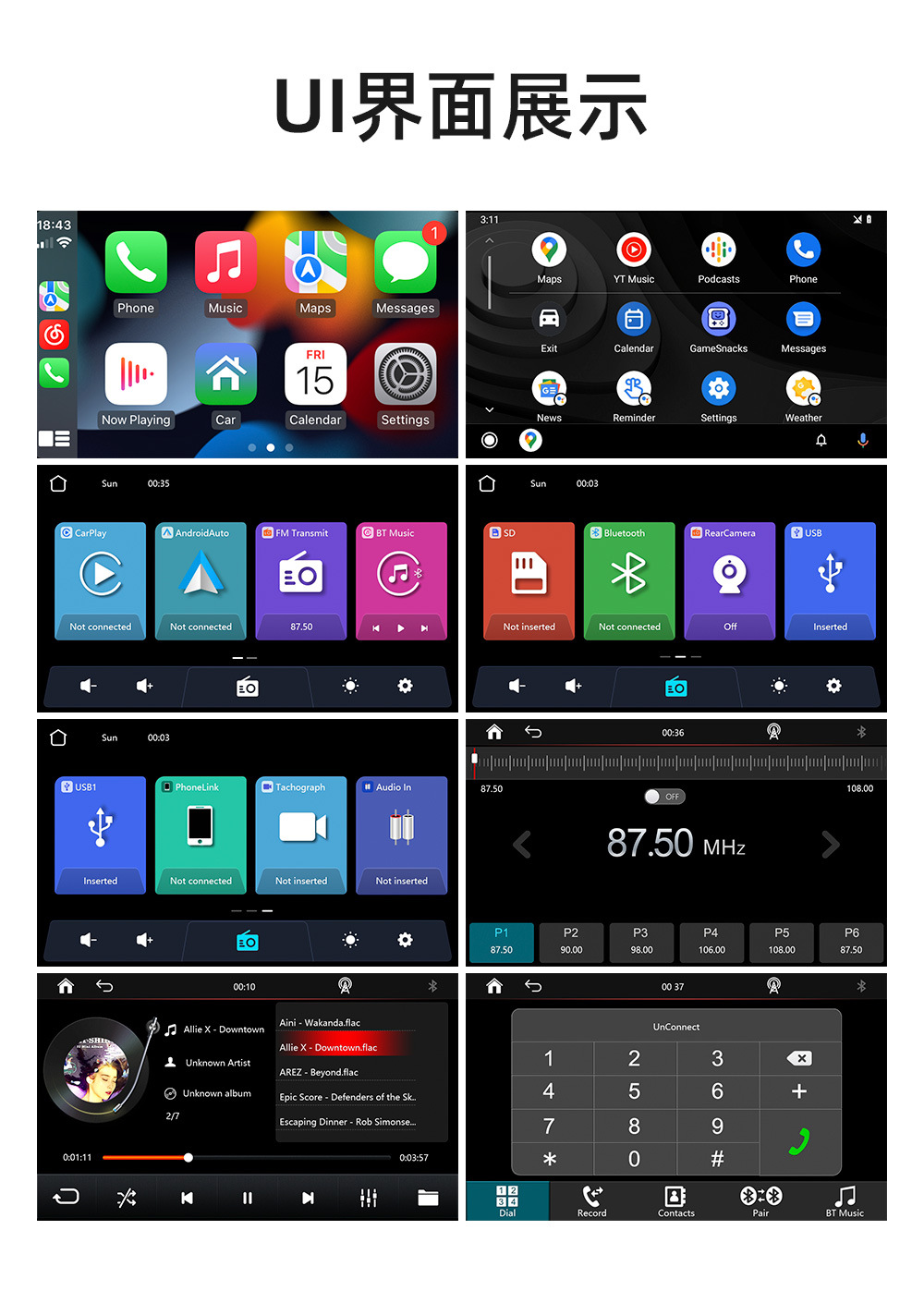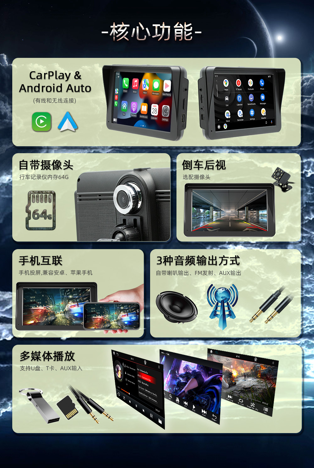♦支持有线和无线carplay+安卓Auto,一键实现手机导航、音乐、语音助手等功能,让你轻松享受驾驶的乐趣。