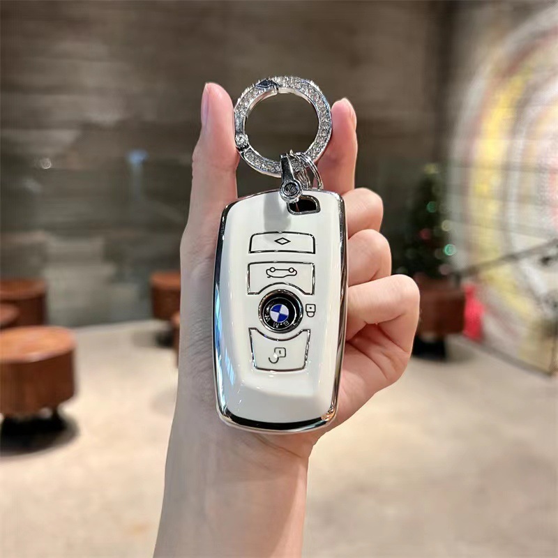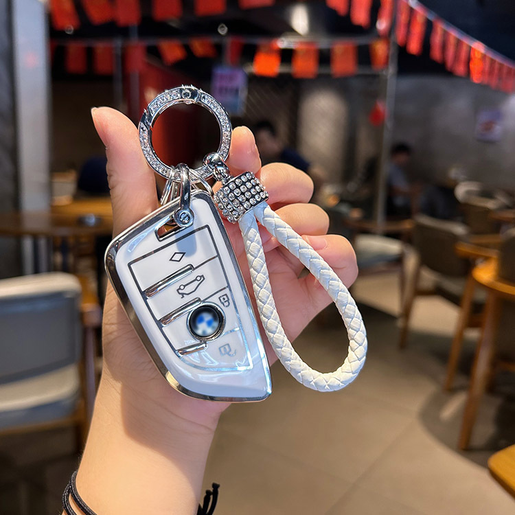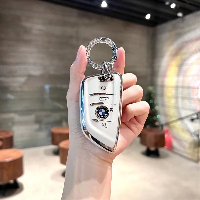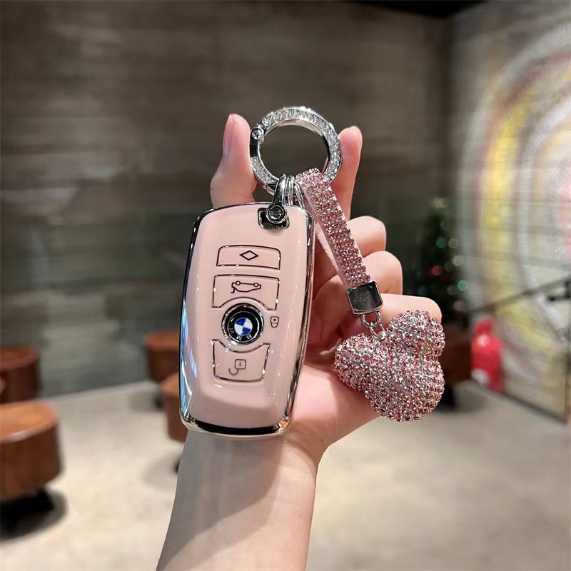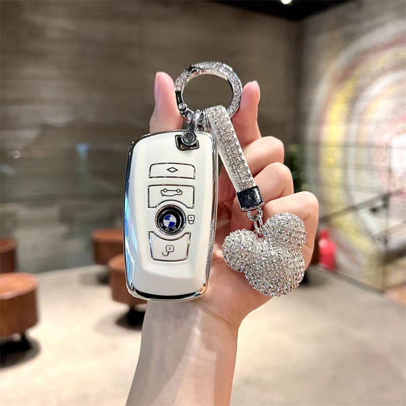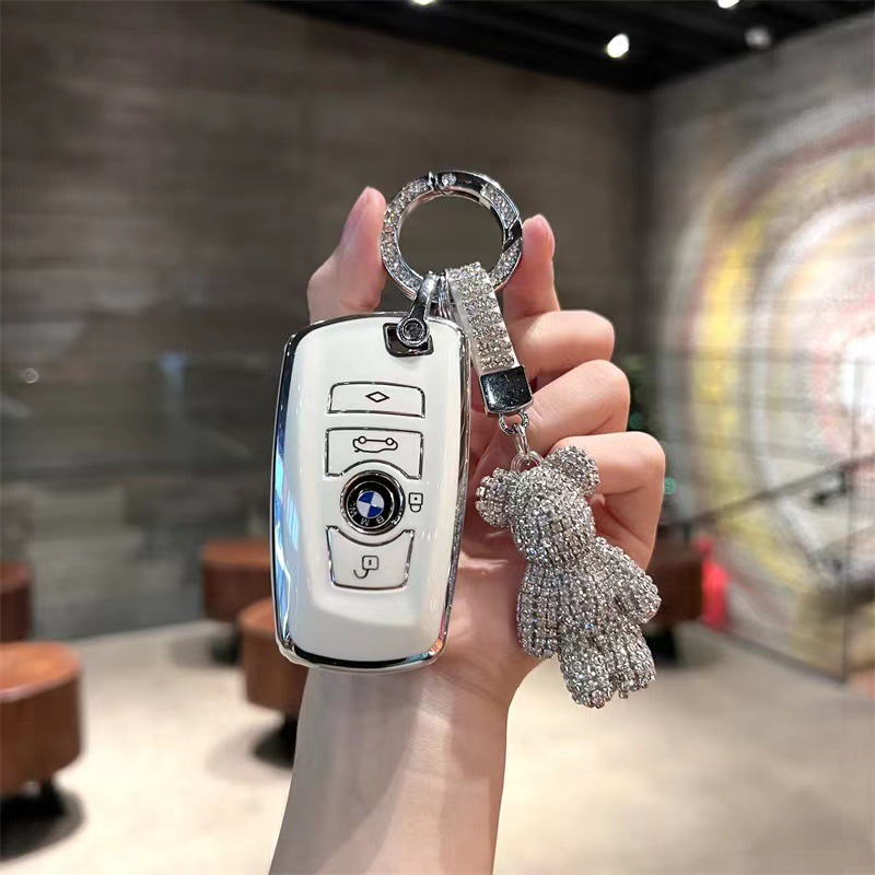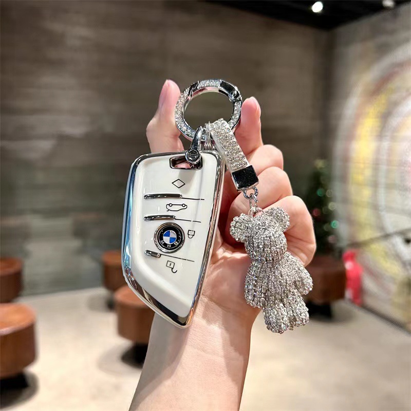 Подходит для BMW 3 серии, 5 серии, X1, X3, X5: брелок для ключей автомобиля с модным подвесом в виде медведя, инкрустированным бриллиантами, защитный чехол для ключей.