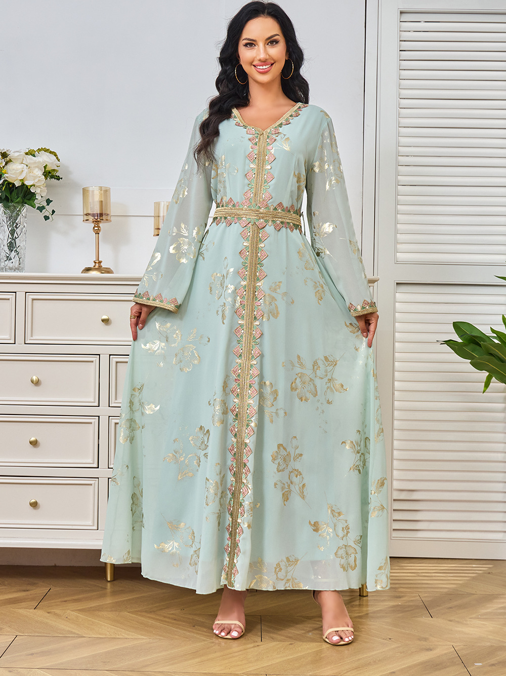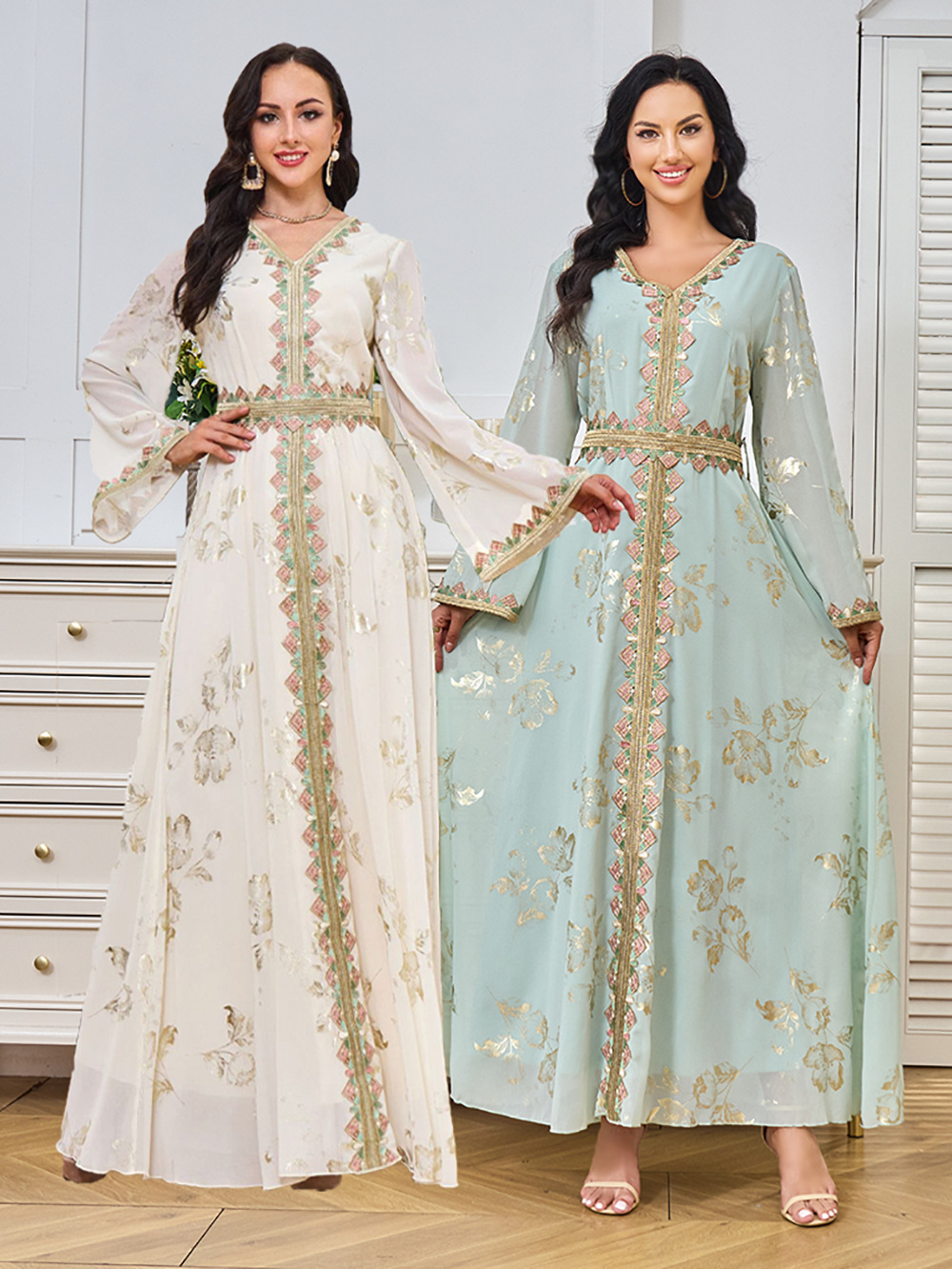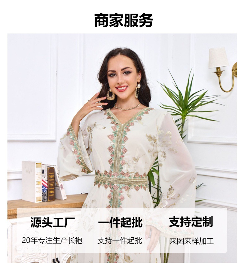 MT037 Ближний Восток Трансграничная торговля Мусульманский халат Женское Новое бронзовое кружевное модное белое платье с вышивкой