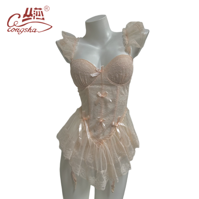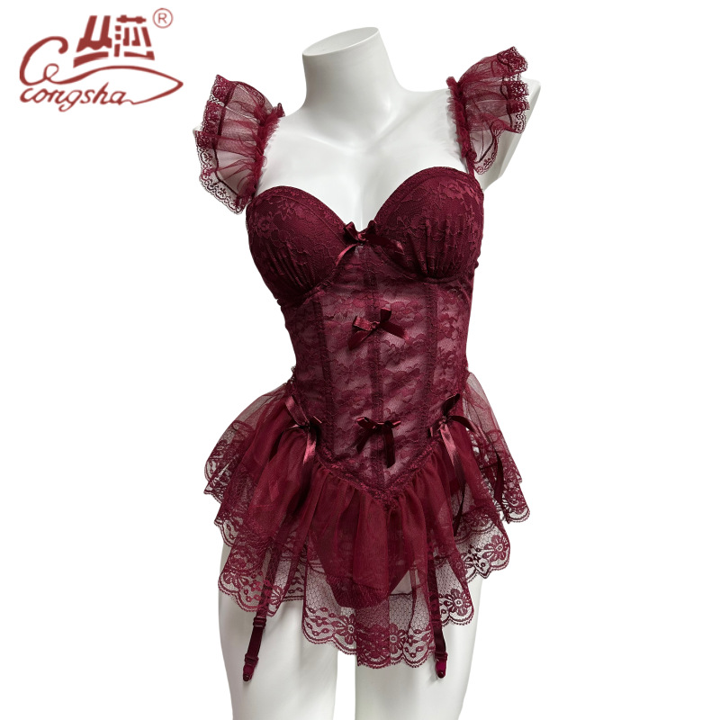 Французский стиль сексуальный корсет сексуальное женское белье жилет верхняя одежда Чистая Талия Кружевная Сетка рыбья кость бюстгальтер костюм