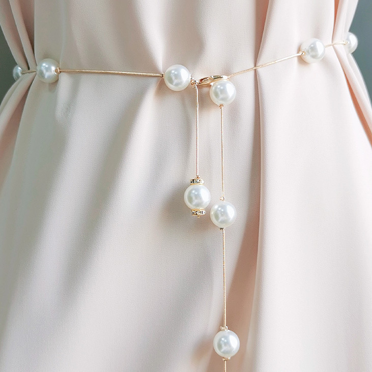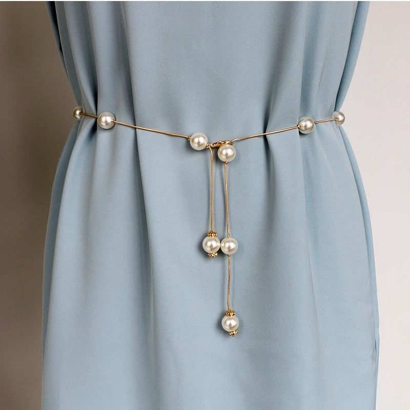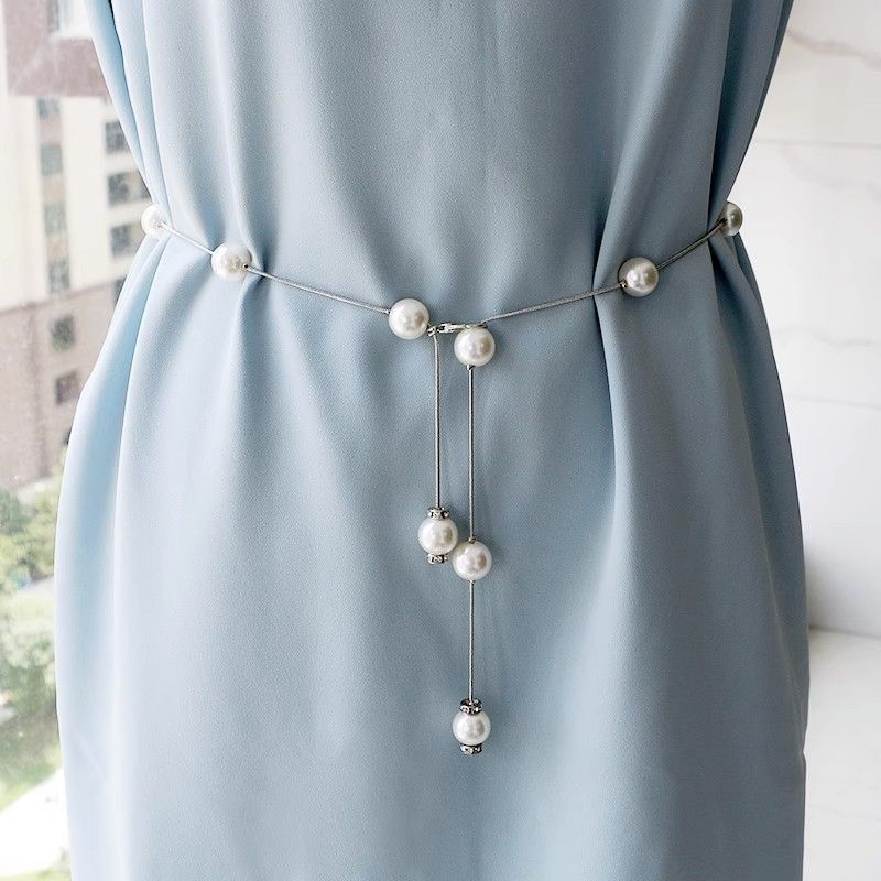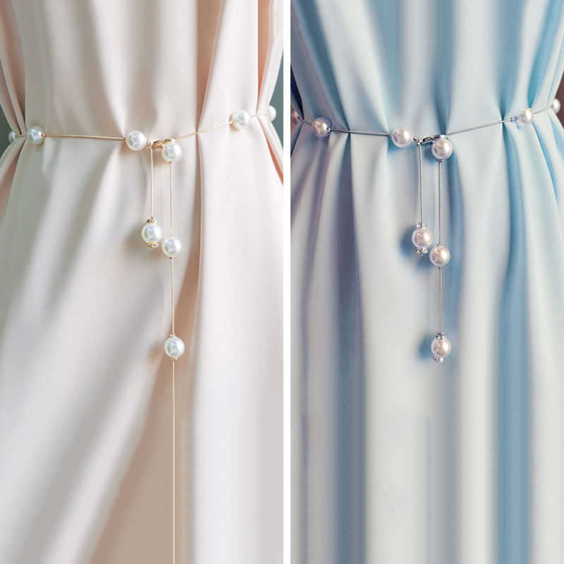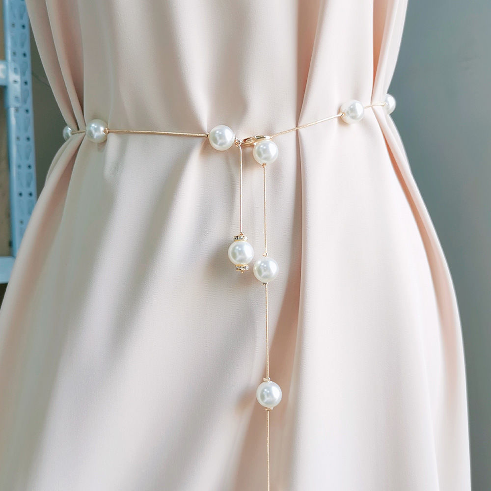 Цепочка, тонкий ремень, женское платье, цепочка на талию, летние аксессуары с юбкой, жемчужный универсальный декоративный ремень, аксессуары