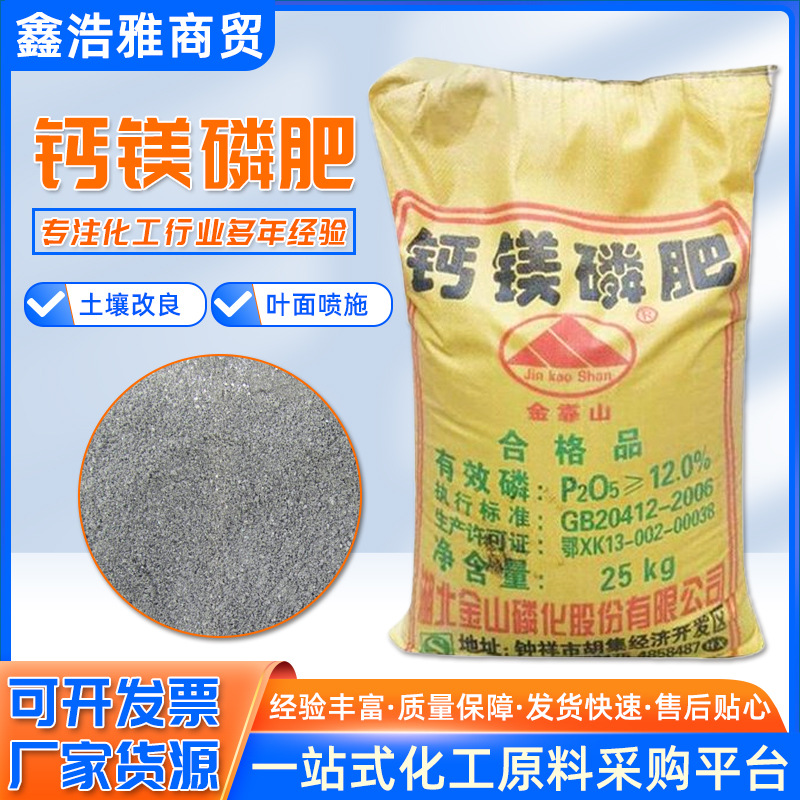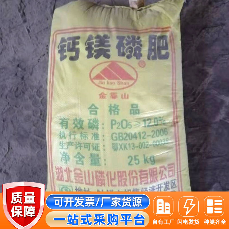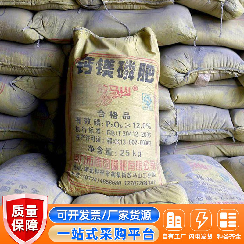 钙镁磷肥是用磷矿与硅酸镁矿物配制的原料,在电炉、高炉或平炉中于1350~ 1500 ℃熔融,熔体用水骤冷,形成粒度小于2 mm的玻璃质物料,经干燥磨细后成为产品。钙镁磷肥又称熔融含镁磷肥,是一种含有磷酸根(PO43-)的硅铝酸盐玻璃体。主要成分包括Ca3(PO4)2、CaSiO3、MgSiO3。是一种多元素肥料,水溶液呈碱性,可改良酸性土壤,培育大苗时作为底肥效果好,植物能够缓慢吸收所需养分。