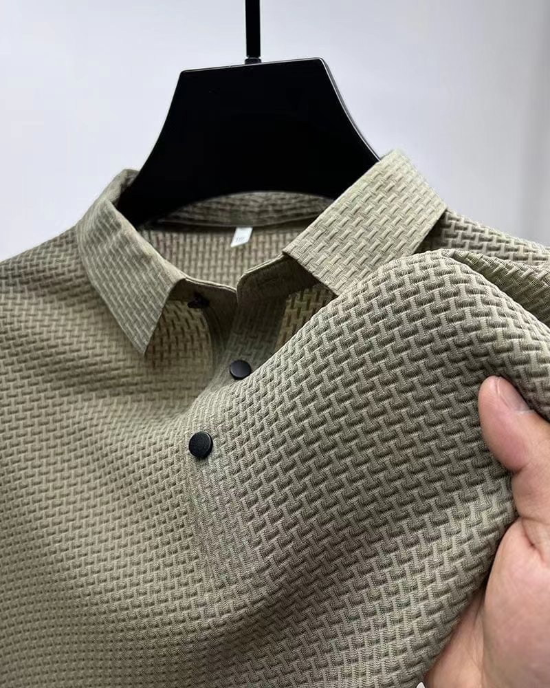 2023 модная футболка с короткими рукавами и лацканами, Мужская Летняя Повседневная Однотонная рубашка-поло, Приталенный топ с универсальным воротником