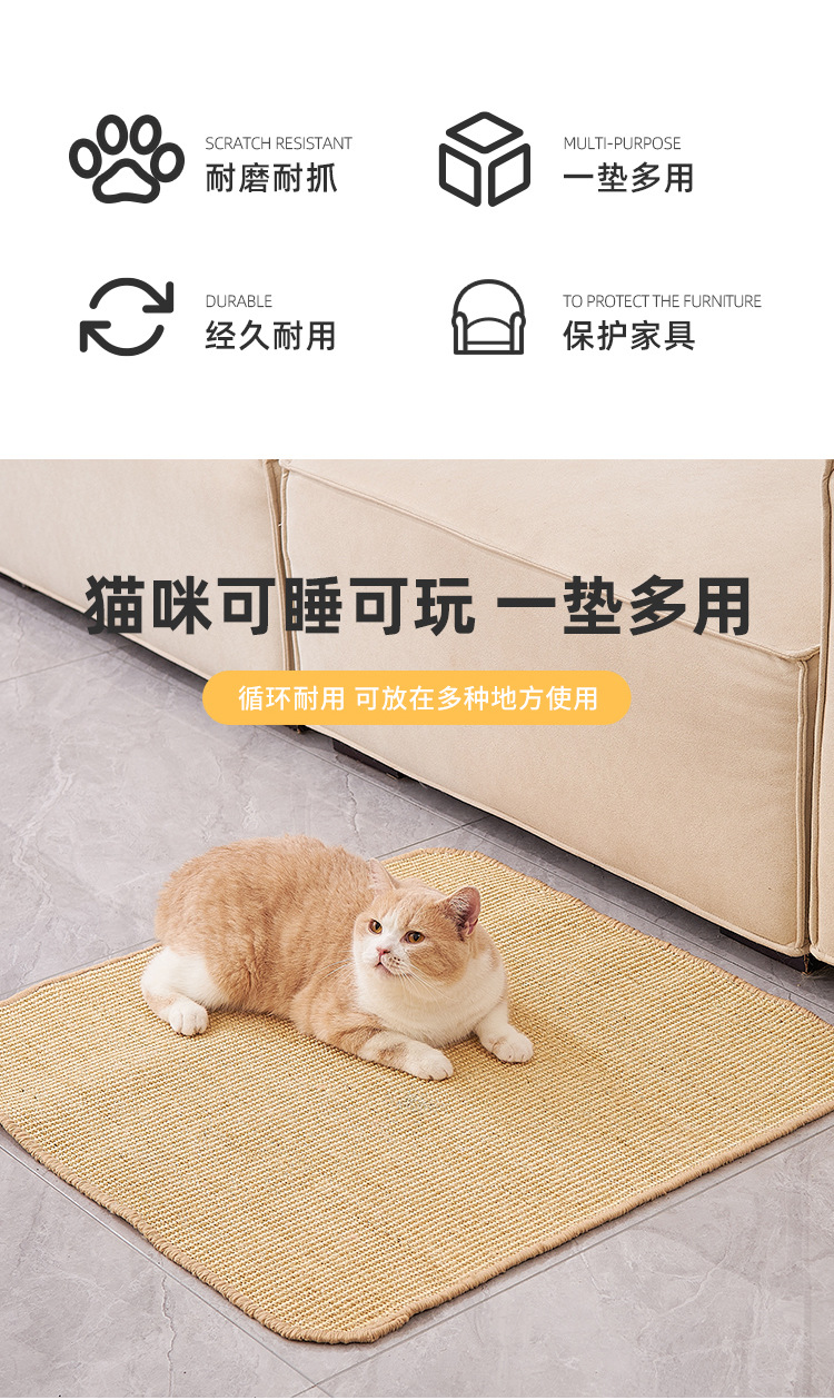 Подушка из сизаля Износостойкая устойчивая к царапинам Защита от кошачьих царапин Диван Доска для кошачьих когтей Товары для ковриков для домашних животных Настенная наклеенная доска для кошачьих царапин