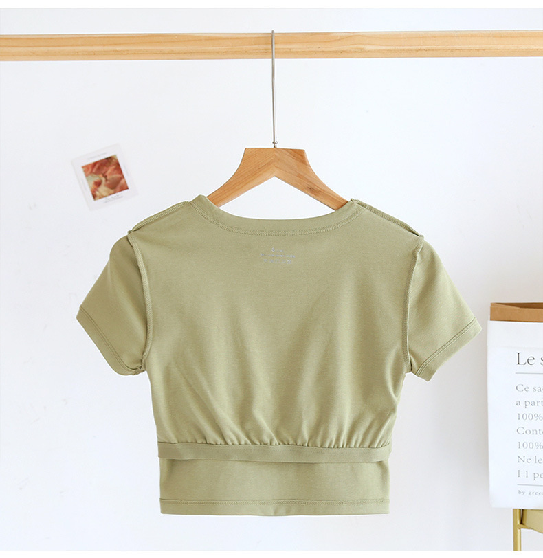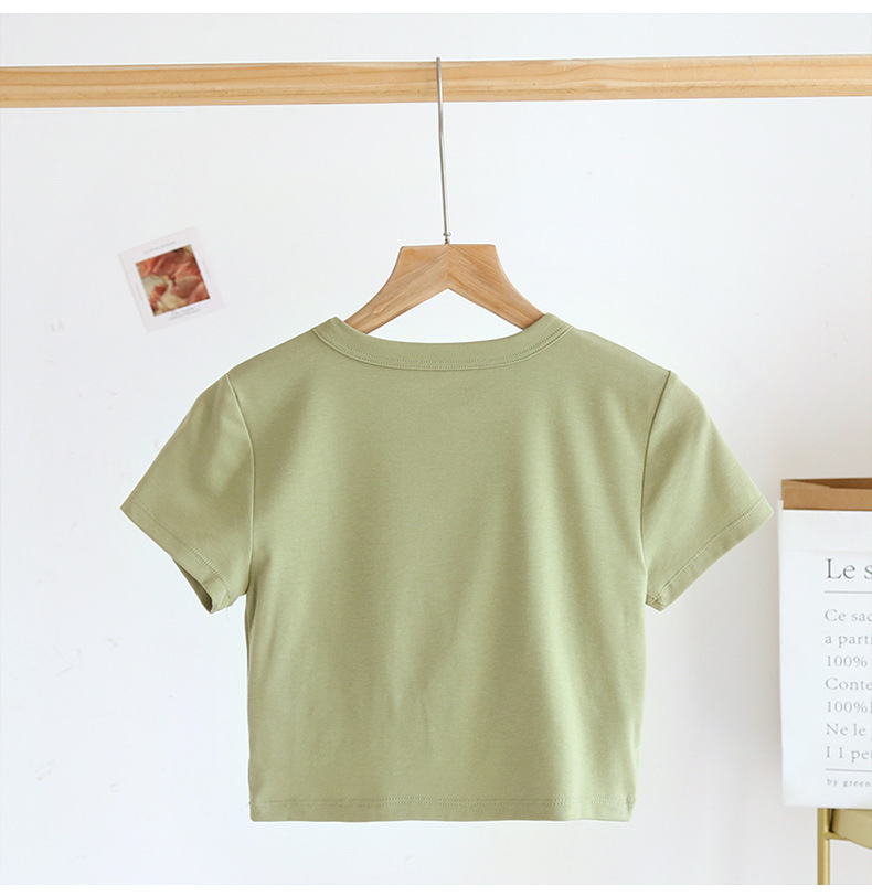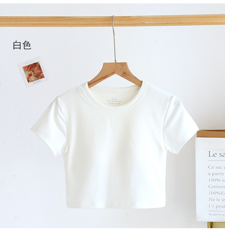 Белый с нагрудным ковриком с короткими пупочными рукавами хлопчатобумажная футболка с круглым вырезом