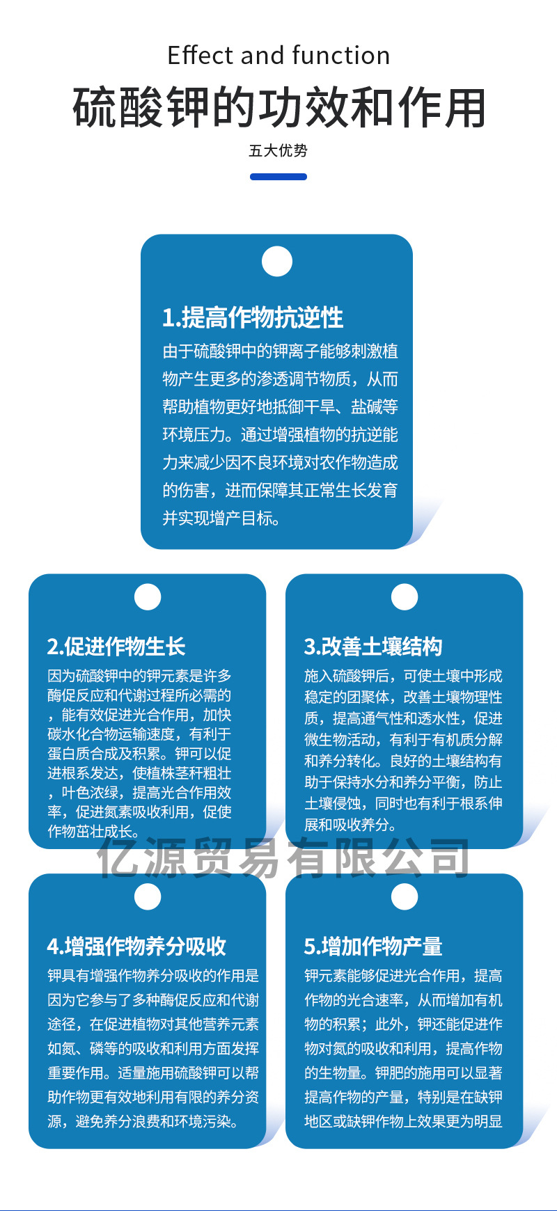 Комплексное удобрение сульфата калия для плодовых деревьев, овощей, цветов, удобрение с высоким содержанием калия, бытовое универсальное водорастворимое удобрение 50kg
