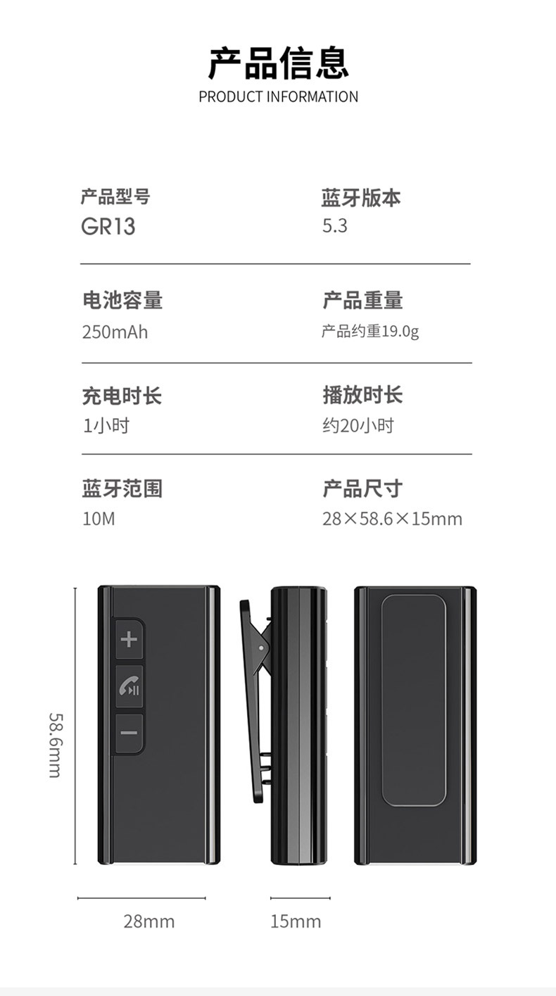 Беспроводной автомобильный Bluetooth-аудиоприемник с поддержкой воспроизведения музыки с TF-карты, дизайном типа «петличка», качеством звука без потерь и индикатором уровня заряда батареи.