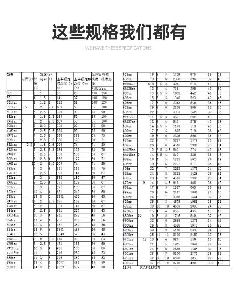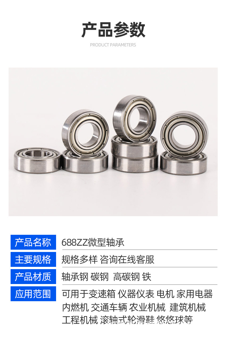 688ZZ (углеродистая сталь); 688ZZ Высокоуглеродистая сталь); 688ZZ (подшипниковая сталь)