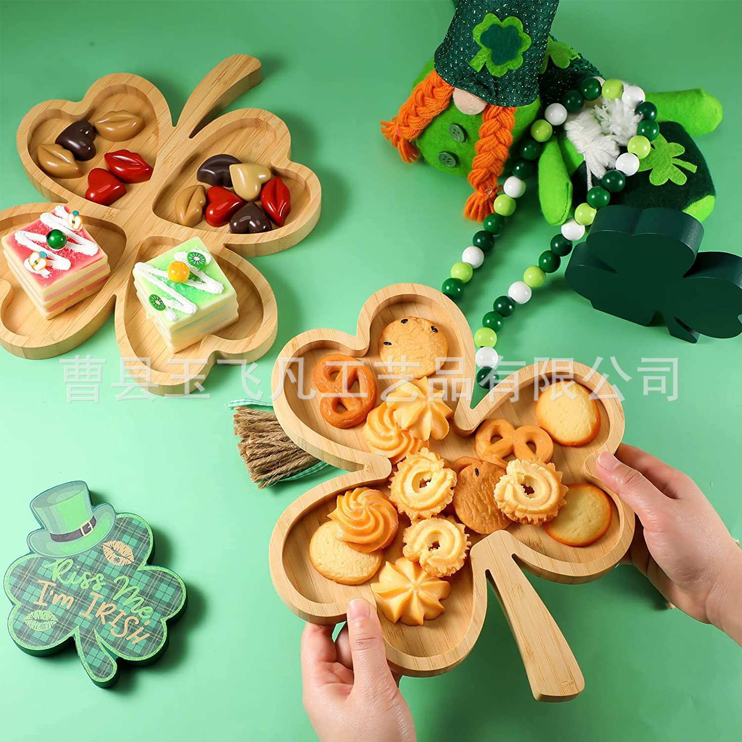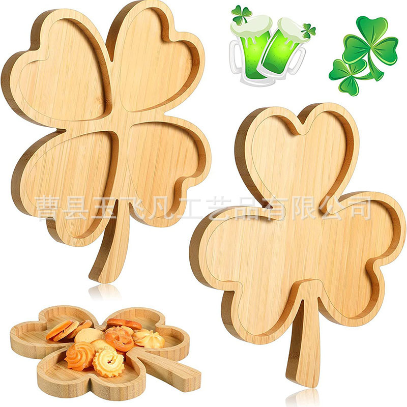 Творческий деревянный четырехлистный поднос для ресторана деревянный с ручкой