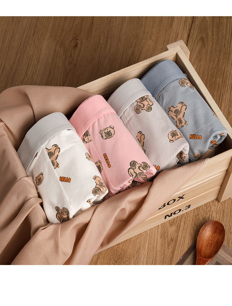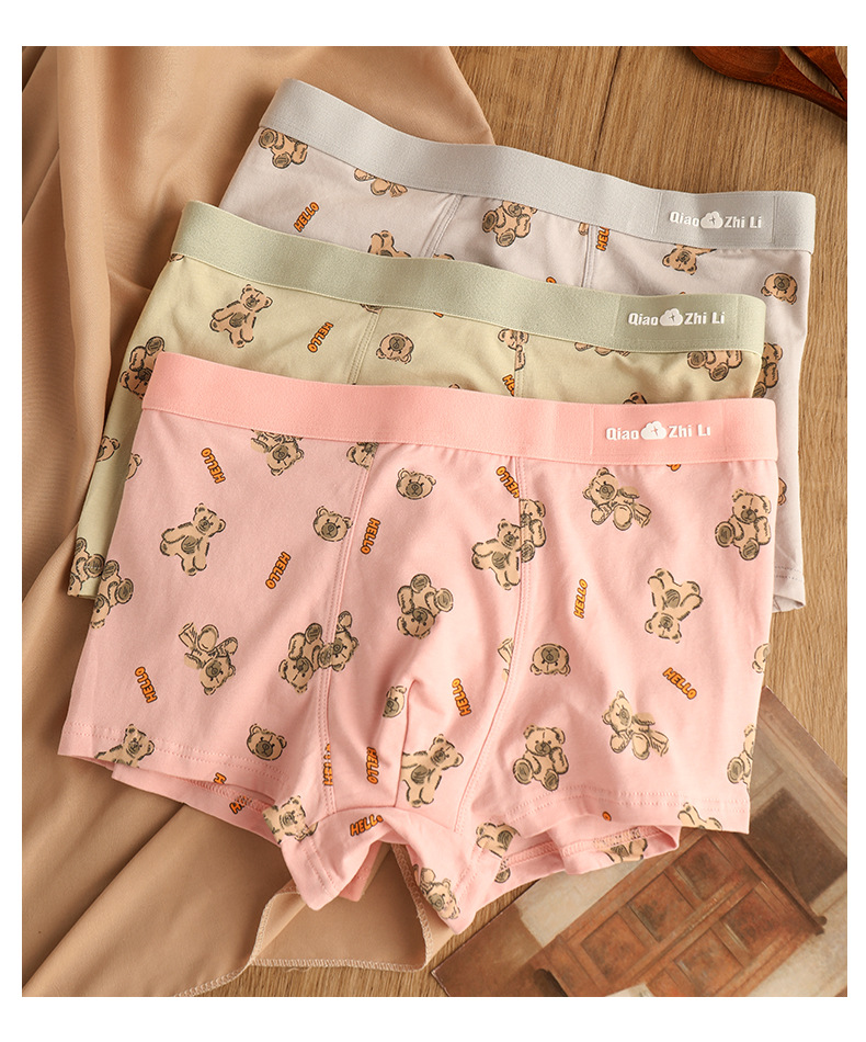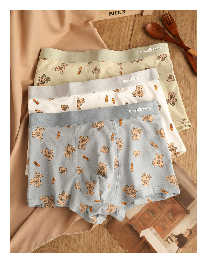 Хлопковое Мужское нижнее белье, мужские трусы-боксеры, дышащие трусы-боксеры со средней талией и милым мультяшным медведем
