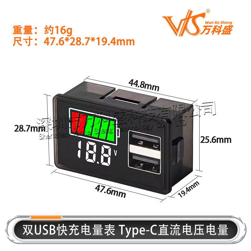 Электрический счетчик двойной USB для быстрой зарядки Type-C
