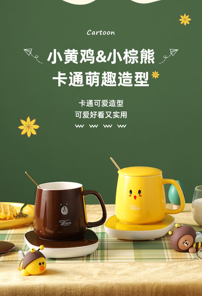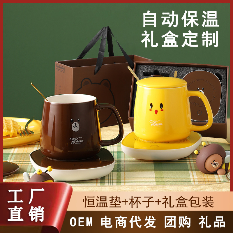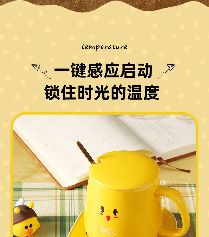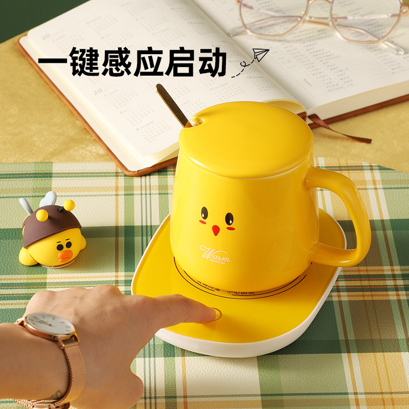 Мультфильм маленькая Желтая утка 55 градусов постоянная температура чашка керамическая теплая чашка интеллектуальное сохранение тепла чашка коврик нагревательная основа теплый коврик для чашки подарок