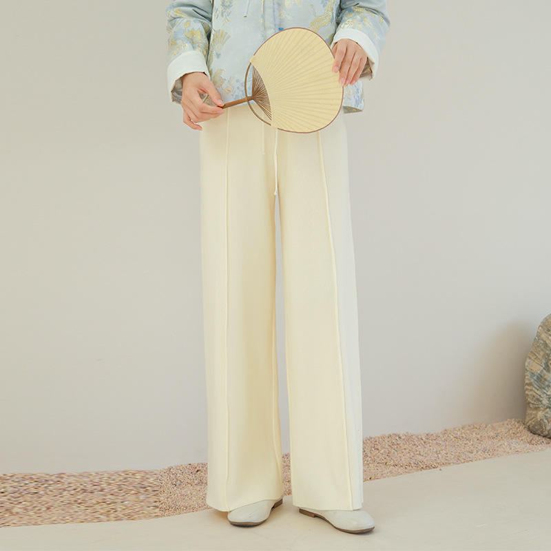 2023 новые женские осенне-зимние брюки с антипиллинговым принтом, прямые широкие брюки, свободные универсальные повседневные трикотажные брюки с драпировкой