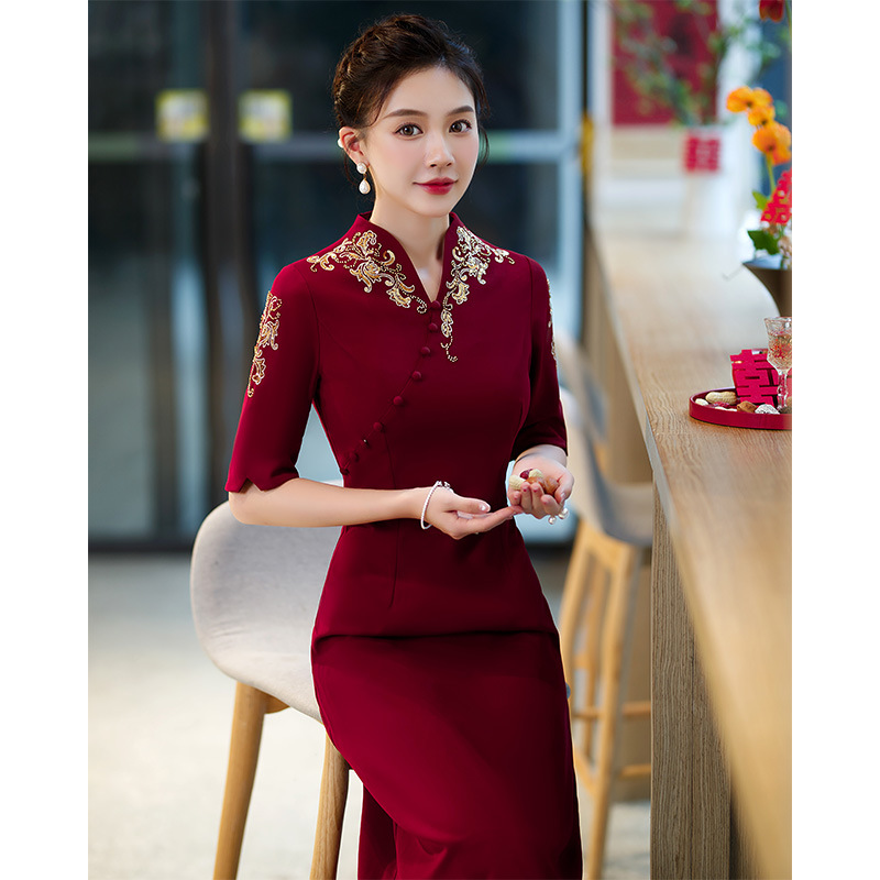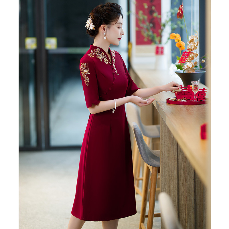Платье для матери 2025, весеннее новое стильное благородное свадебное платье для свекрови, свадебное банкетное платье, миниатюрное платье для матери, бордовое