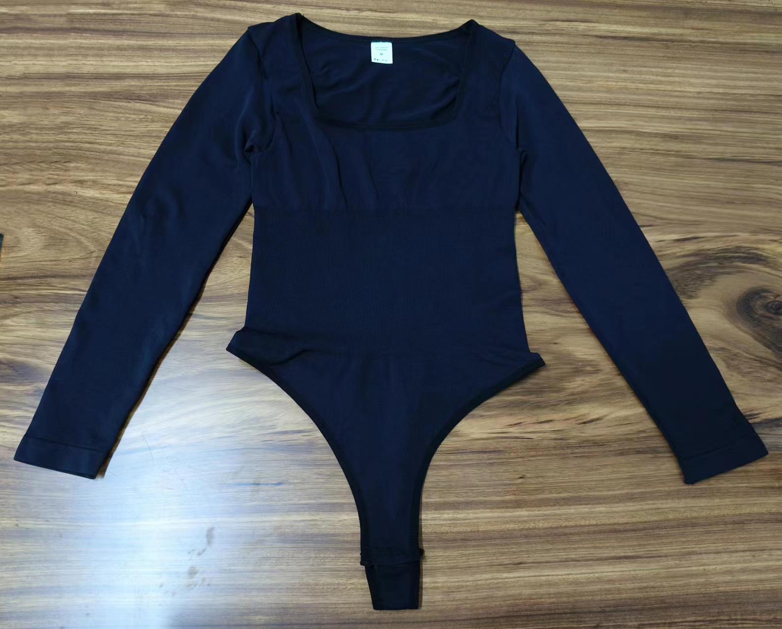Горячие трансграничные взрывы Amazon 2023 осень Новая бесшовная нить с квадратным воротником и талией, корректирующая одежду