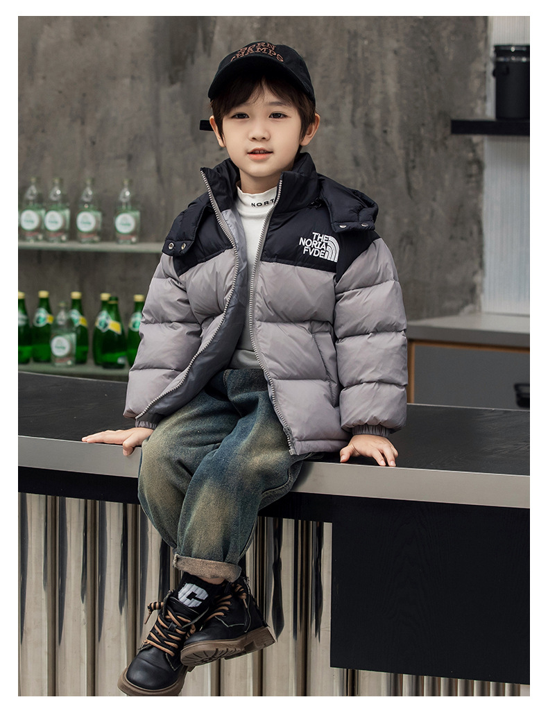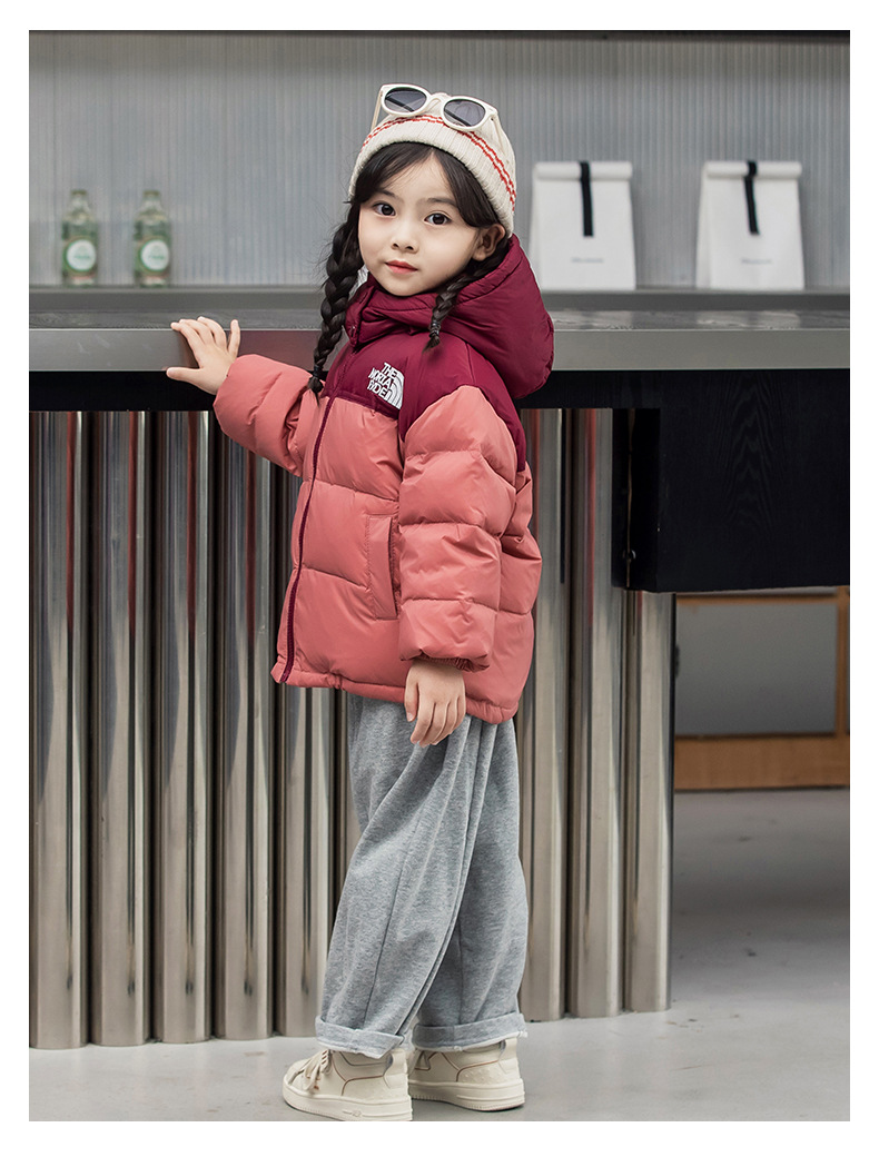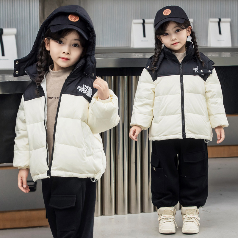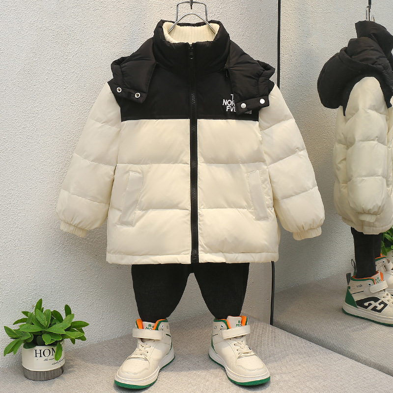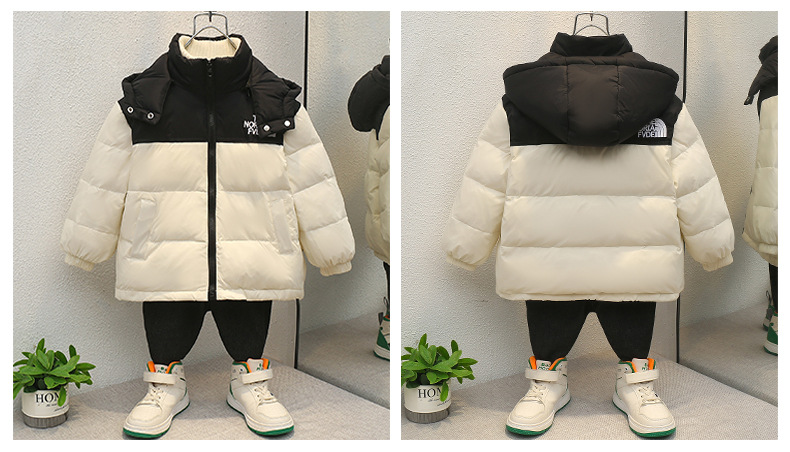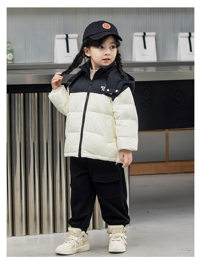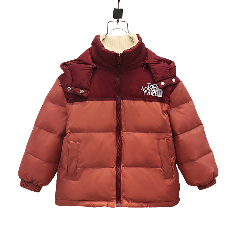 Детская одежда 2024, новая детская морозостойкая одежда для мальчиков и девочек, куртки с цветными блоками для детей маленьких и средних размеров, утолщенная съемная морозостойкая одежда с капюшоном