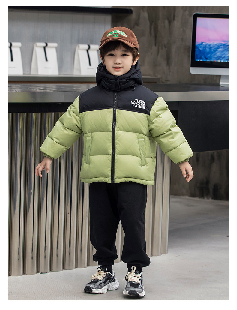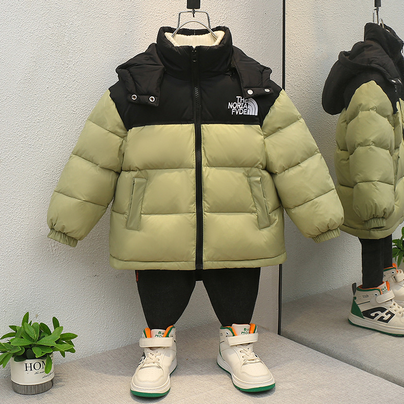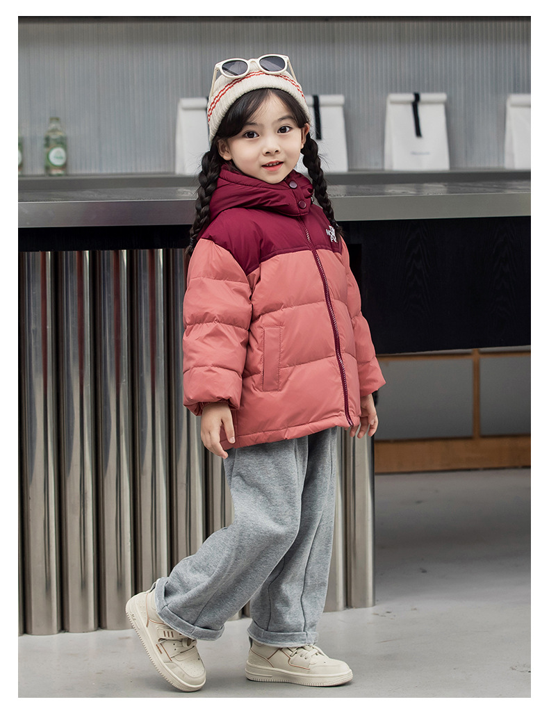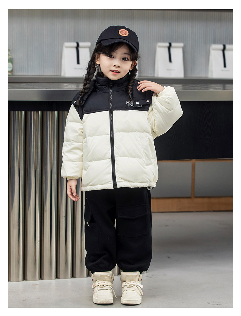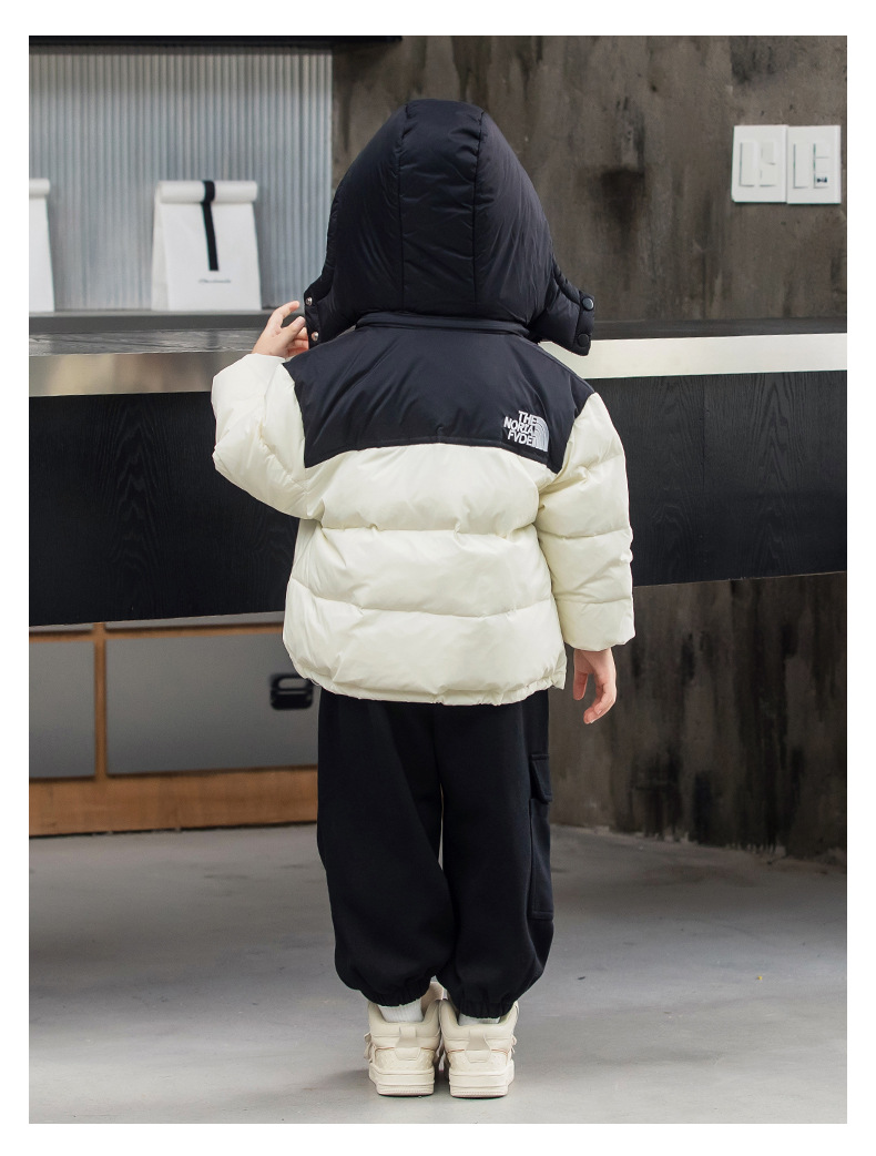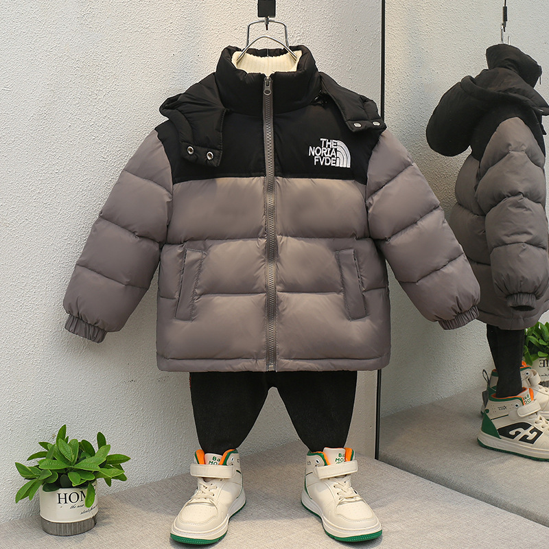 Детская одежда 2024, новая детская морозостойкая одежда для мальчиков и девочек, куртки с цветными блоками для детей маленьких и средних размеров, утолщенная съемная морозостойкая одежда с капюшоном