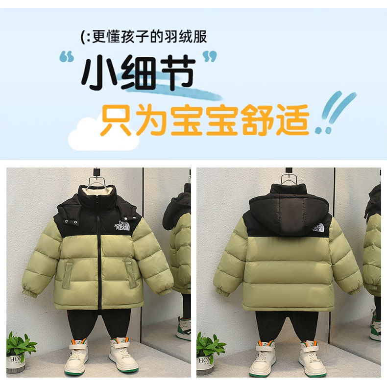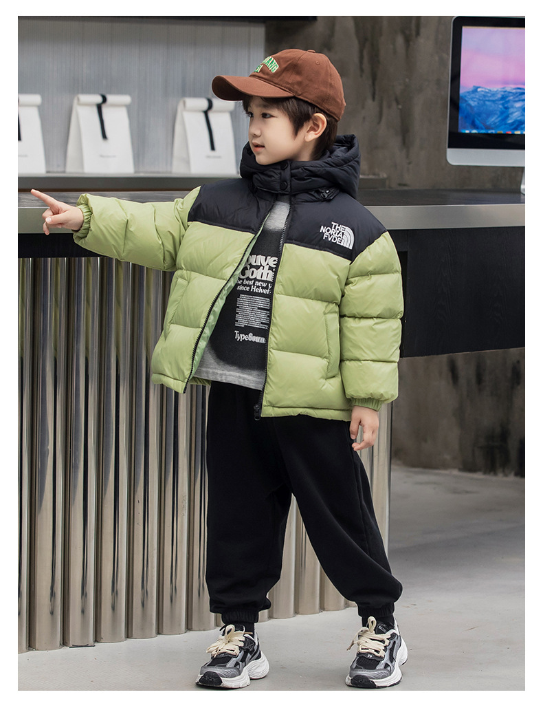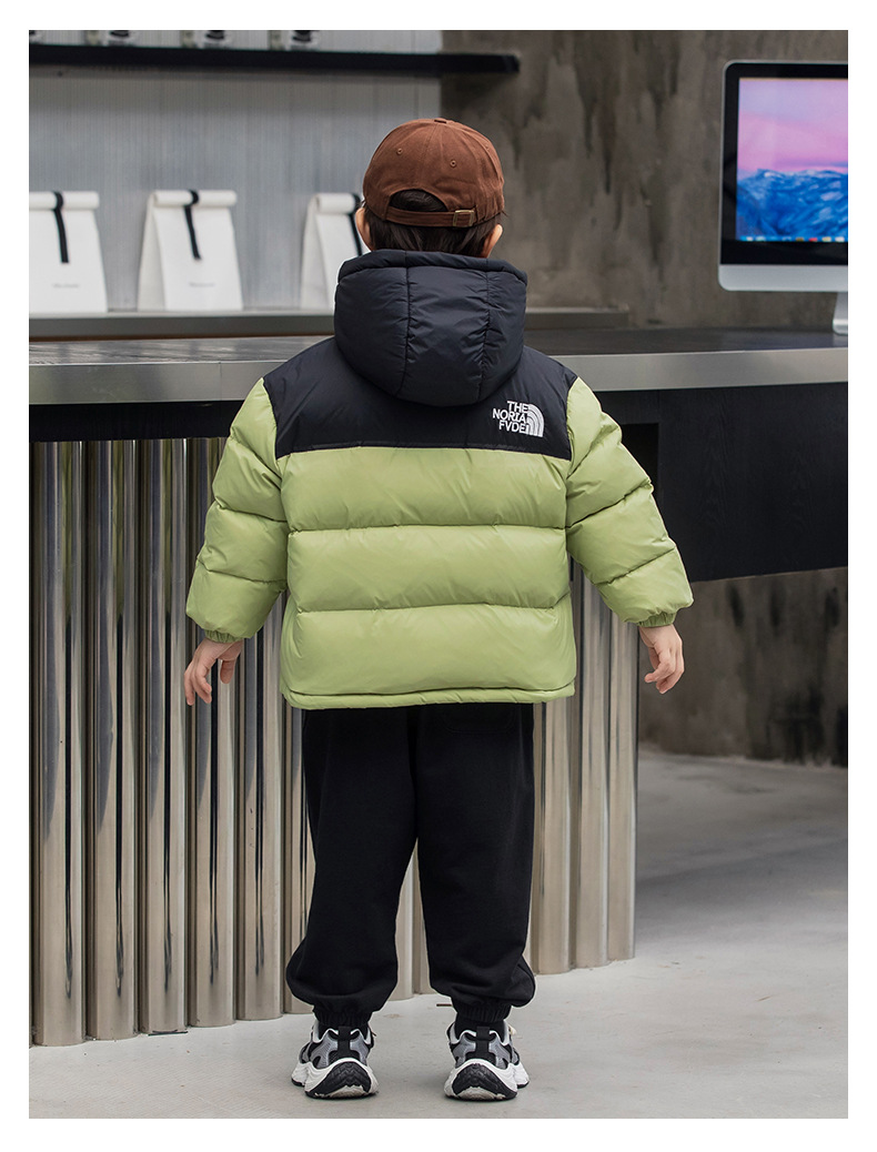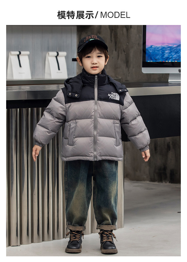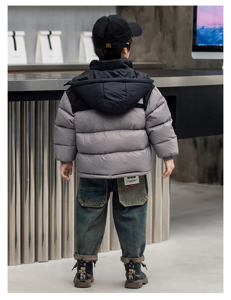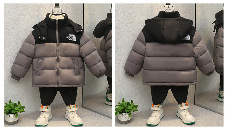 Детская одежда 2024, новая детская морозостойкая одежда для мальчиков и девочек, куртки с цветными блоками для детей маленьких и средних размеров, утолщенная съемная морозостойкая одежда с капюшоном