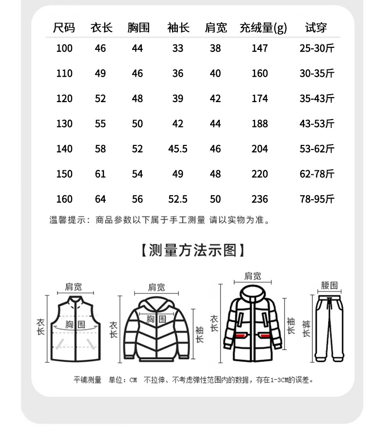 100cm; 110cm; 120cm; 130cm; 140cm; 150cm; 160cm