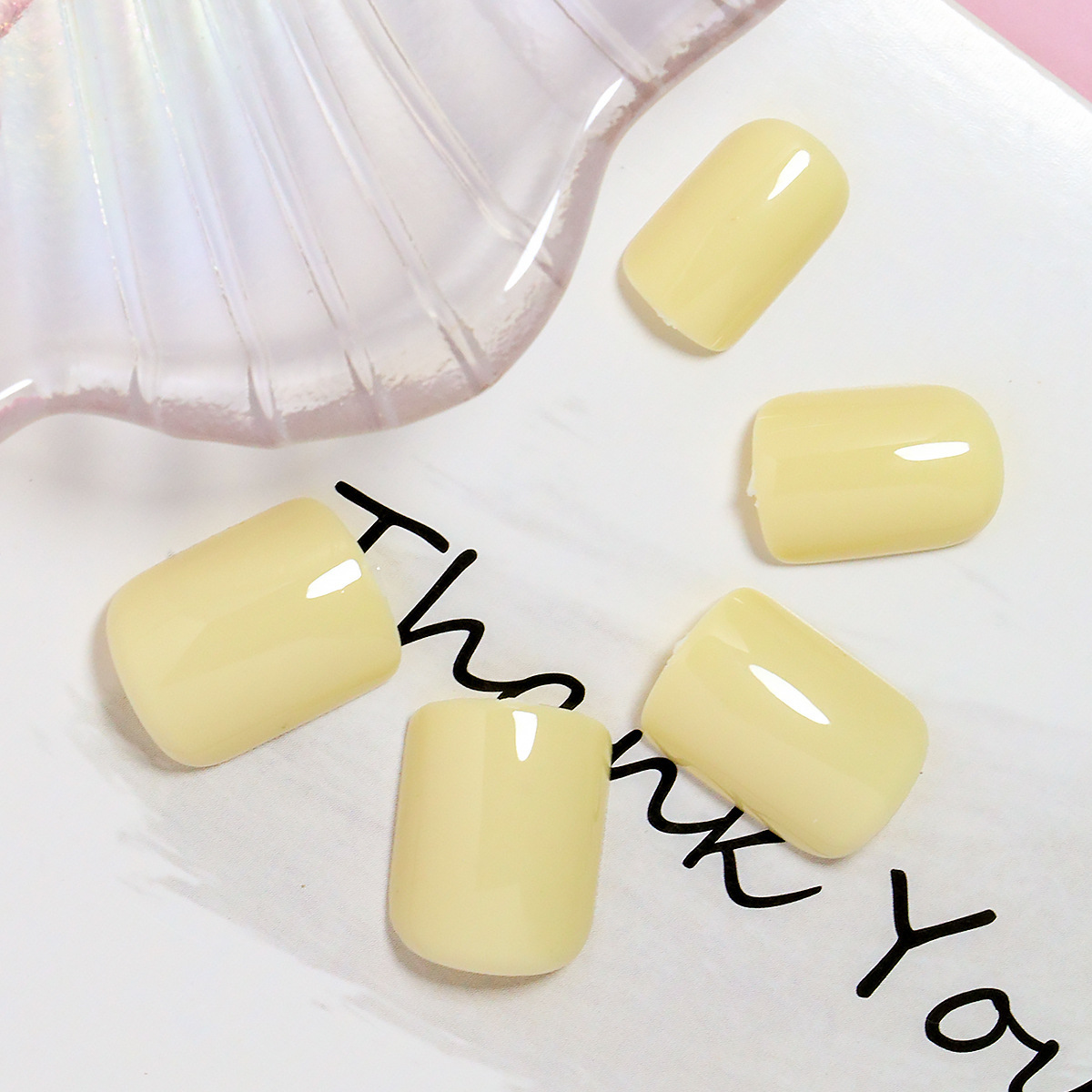 Однотонный маникюр, желтый маникюр, гусиный желтый маникюр, короткие ногти.