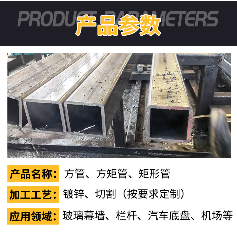 Труба квадратная оцинкованная от производителя из Гуандуна для навесных стен, горячеоцинкованная прямоугольная труба 200*100*6, колонна, черный материал, квадратная труба