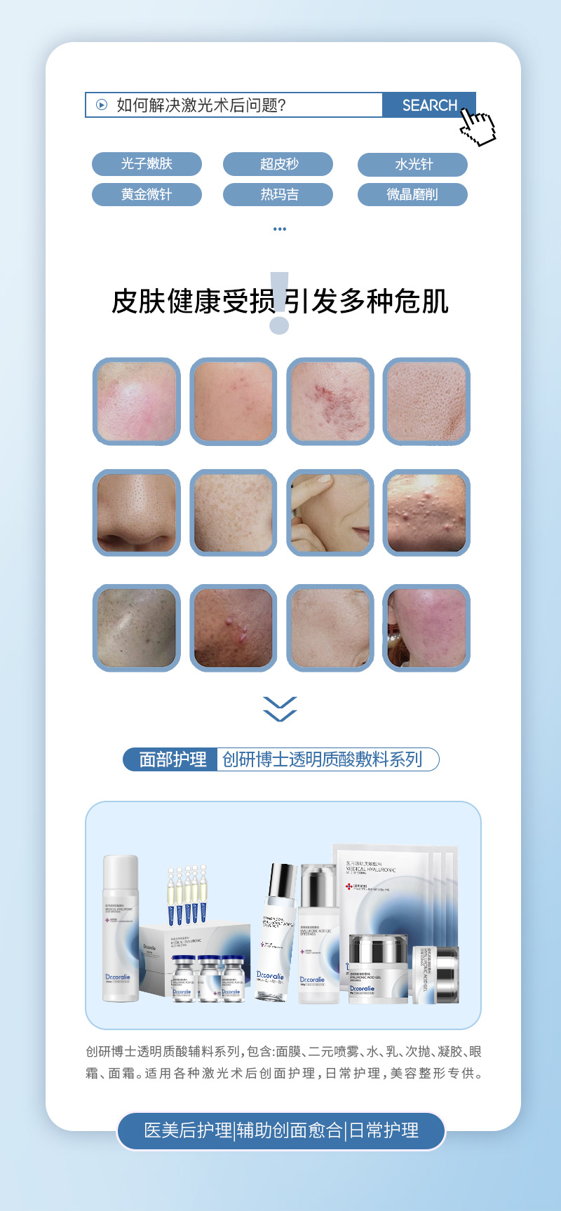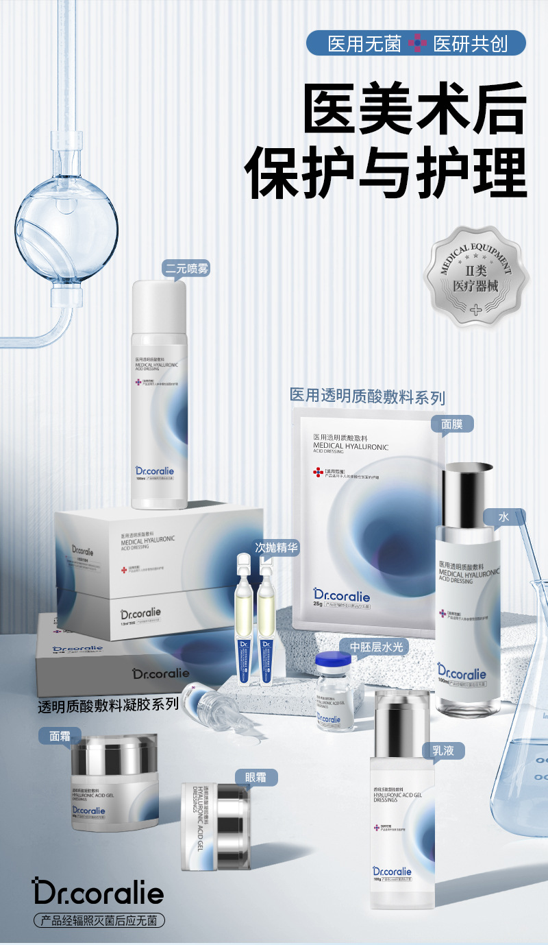 Медицинские изделия класса II, оборудование для медицинской косметологии, медицинский гель-спрей с гиалуроновой кислотой для восстановления после операций в салонах красоты.