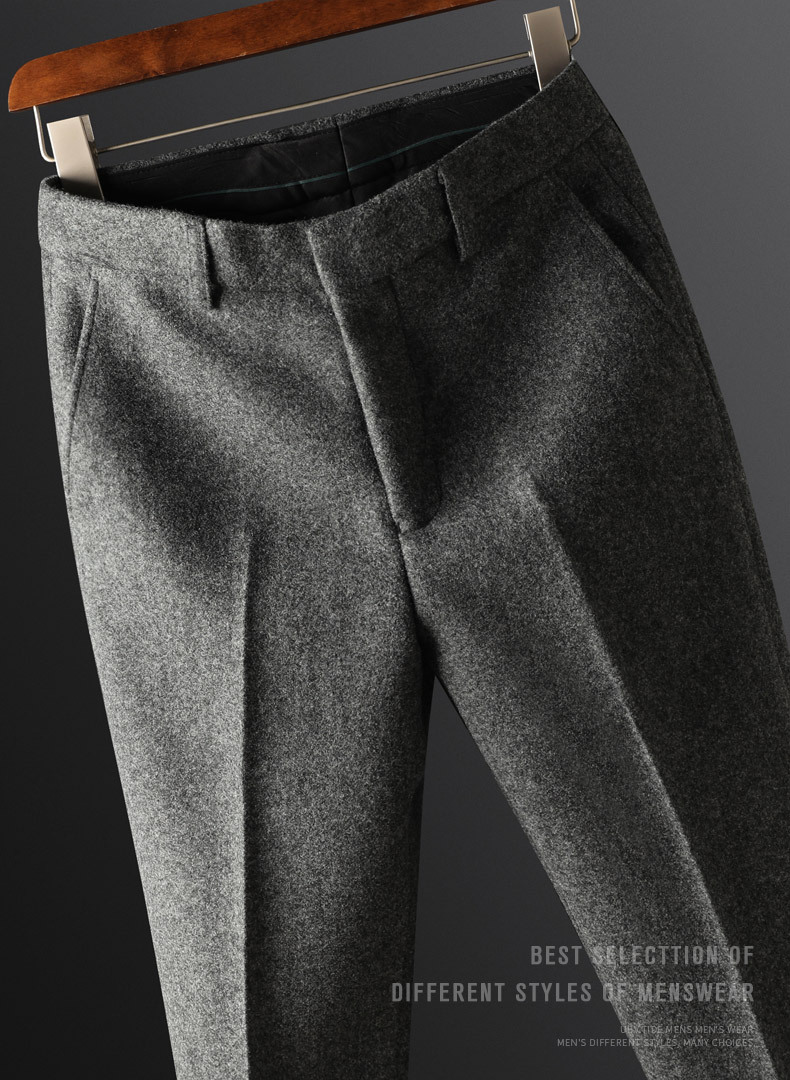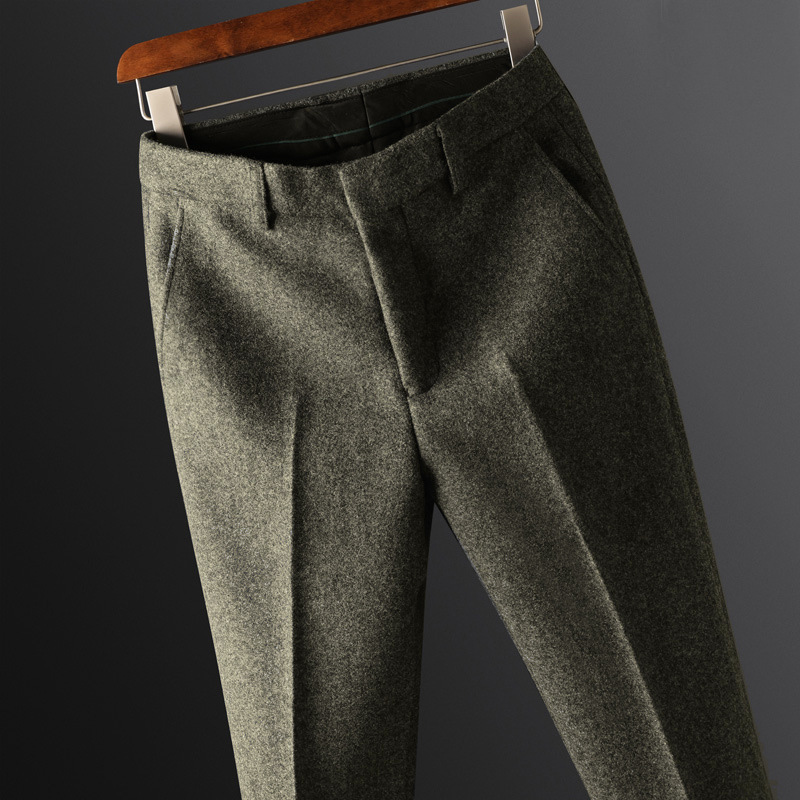 Осенние роскошные утолщенные теплые шерстяные брюки, классические брюки из искусственной шерсти для мужчин, легкие деловые повседневные прямые мужские брюки.