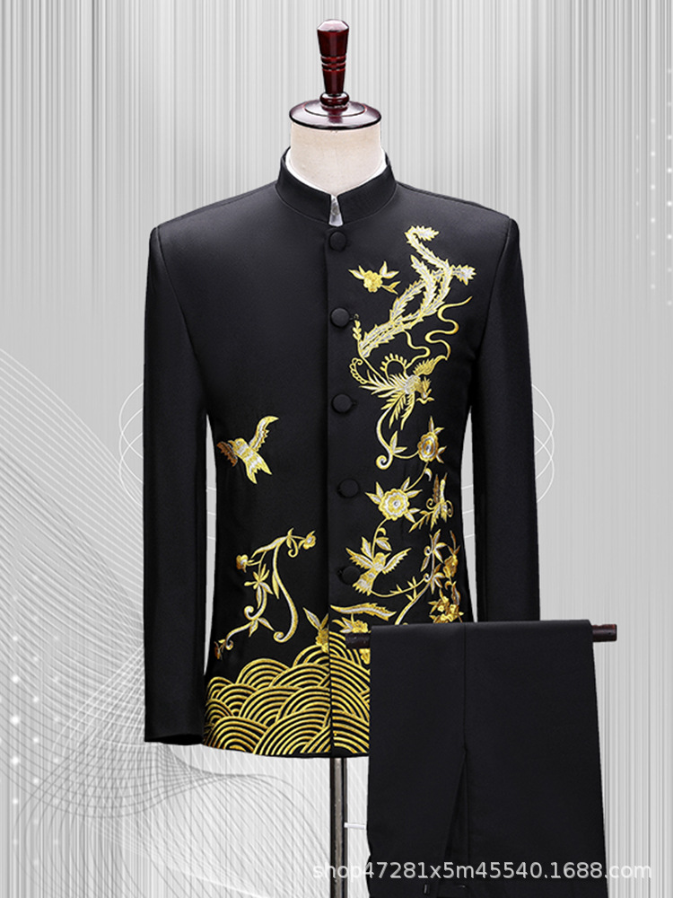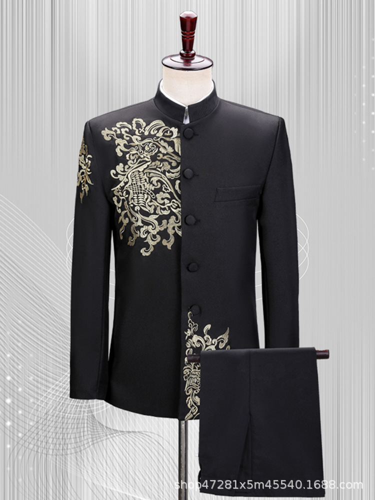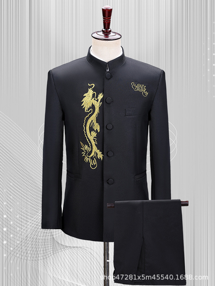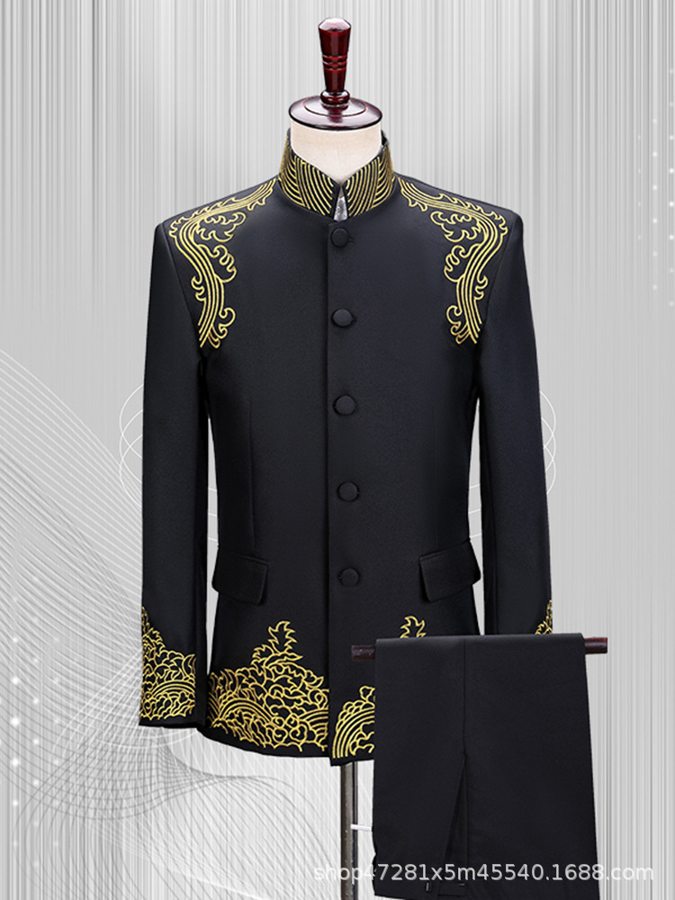 Черный костюм Мао с вышитым воротником, мужской новый костюм для выступления молодежного хора китайского певца, костюм Тан