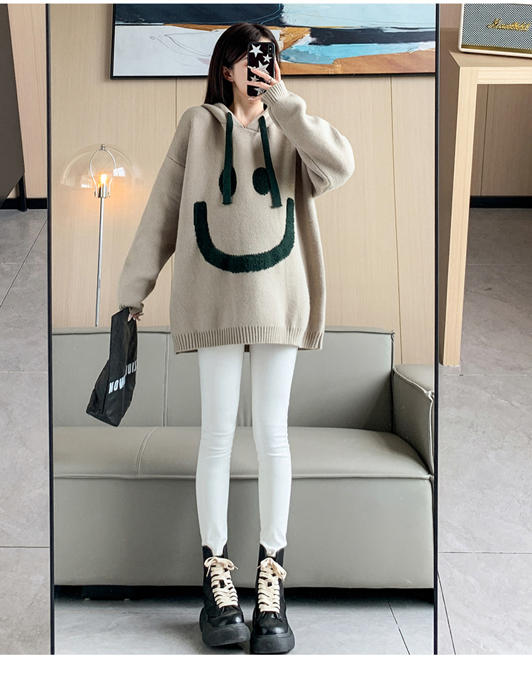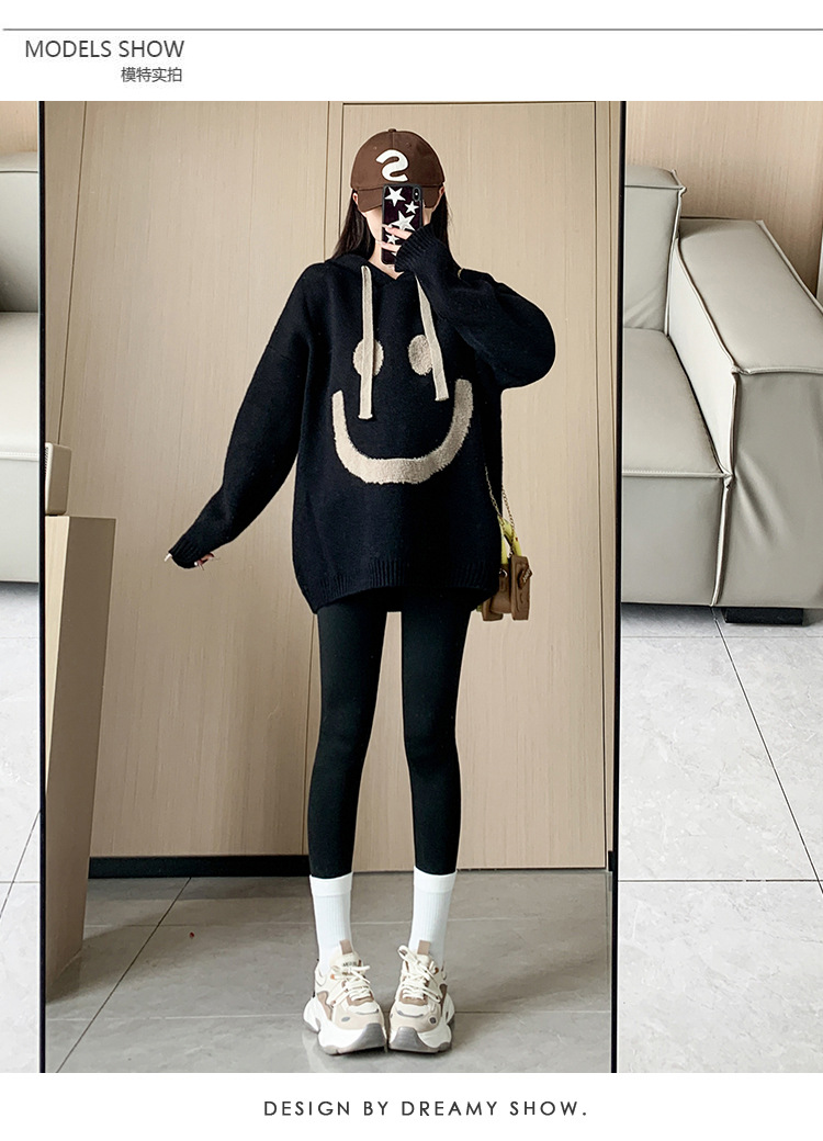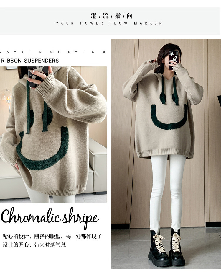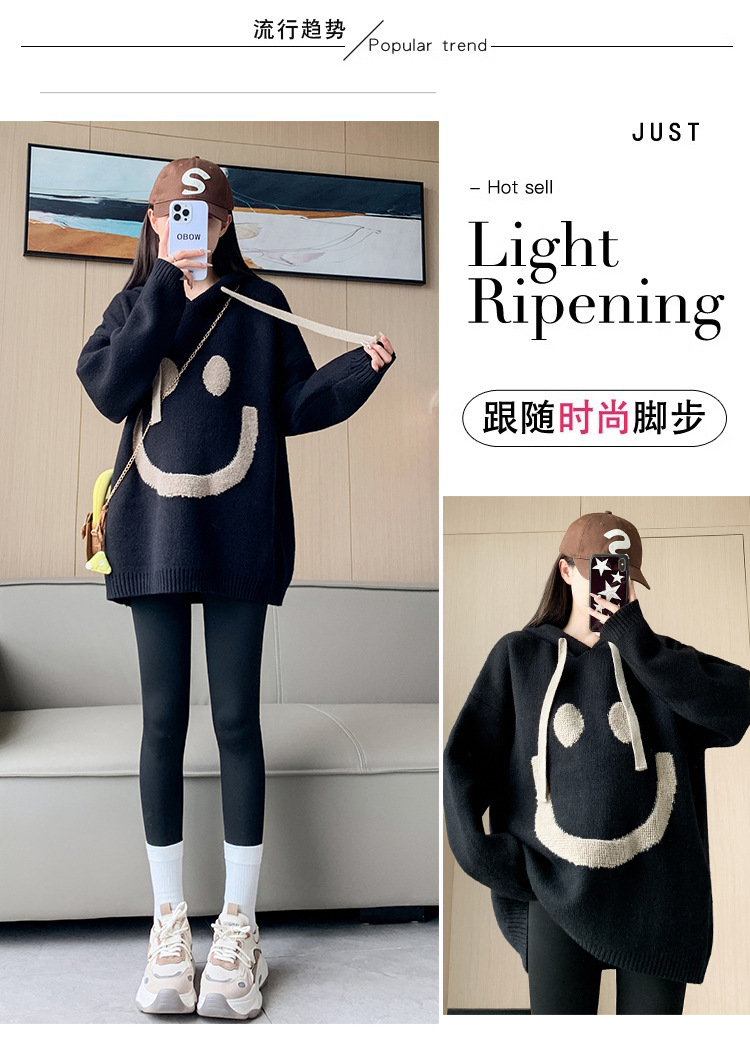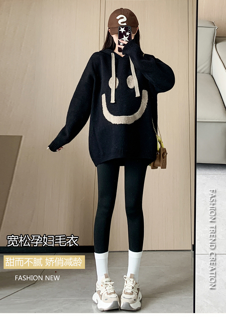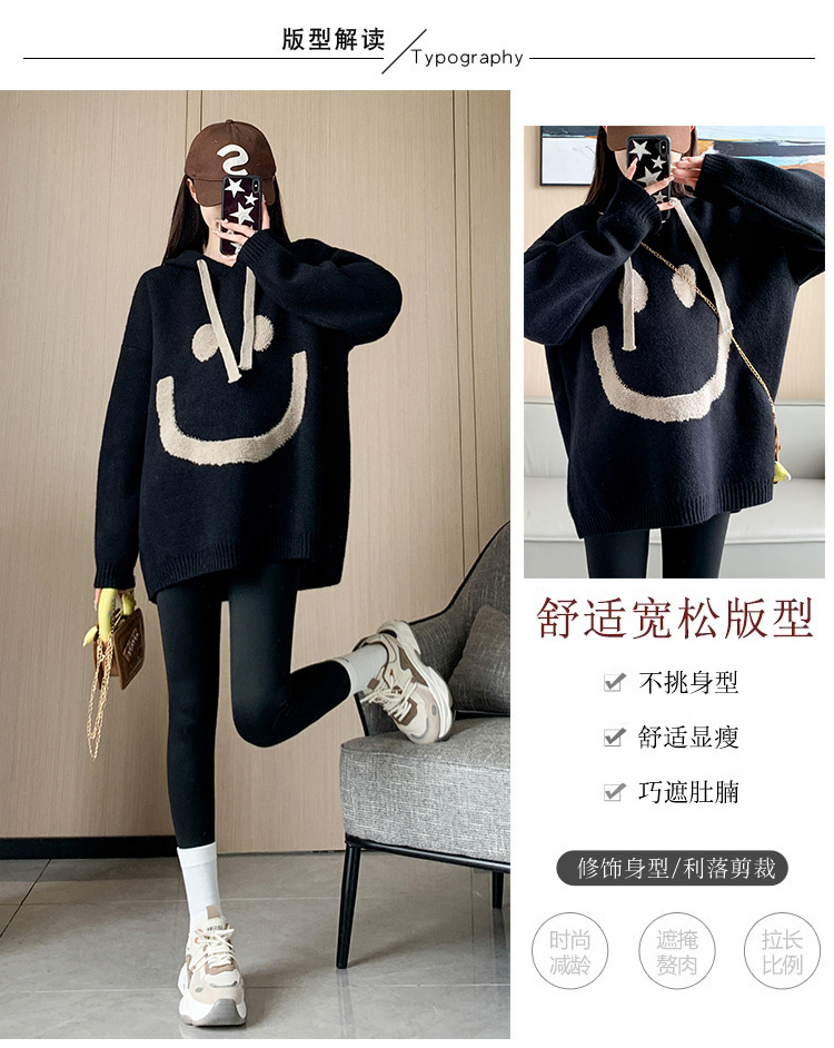 Новинка осени, повседневный стиль, универсальный свитер с капюшоном и смайликом, одежда для беременных