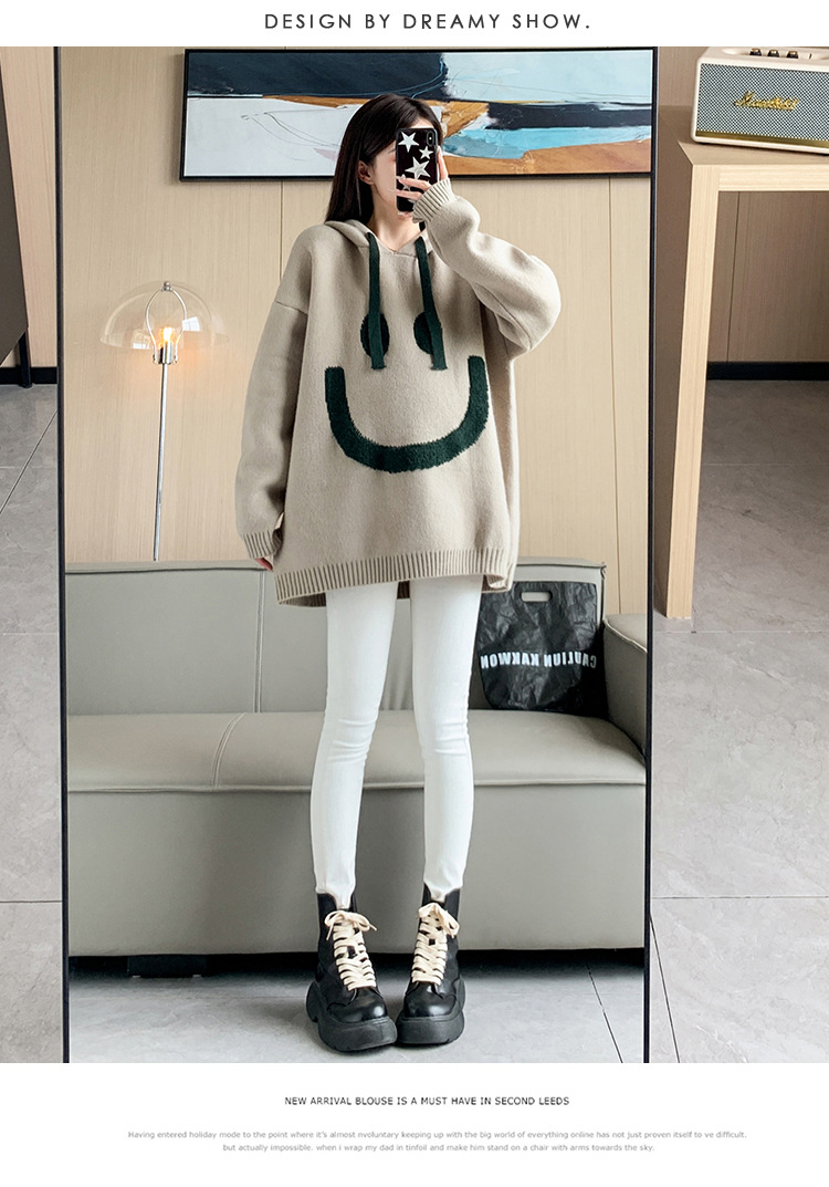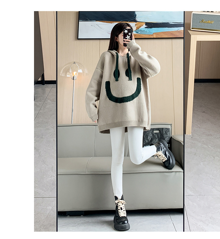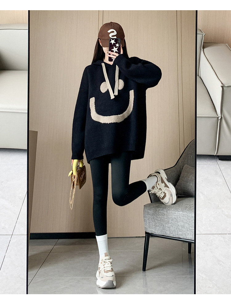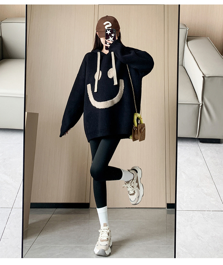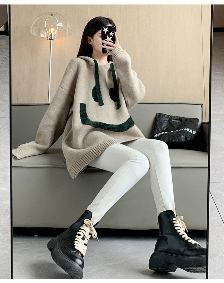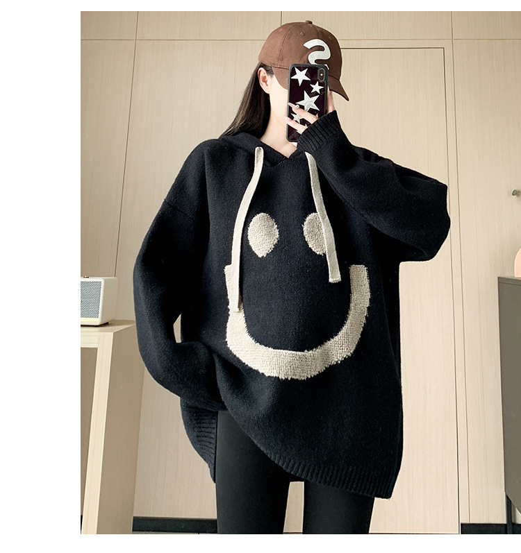 Новинка осени, повседневный стиль, универсальный свитер с капюшоном и смайликом, одежда для беременных