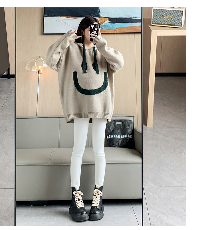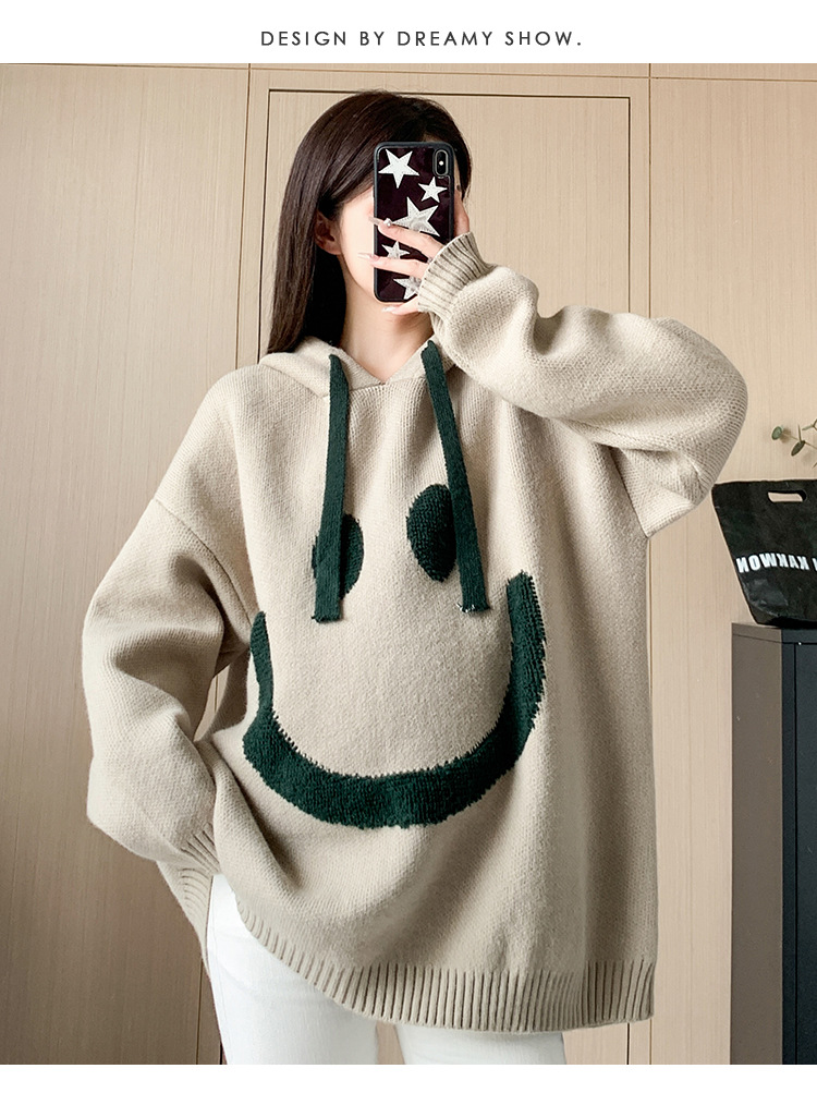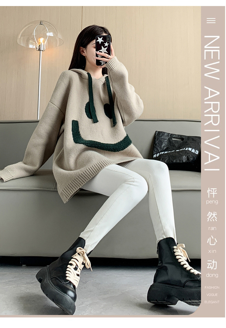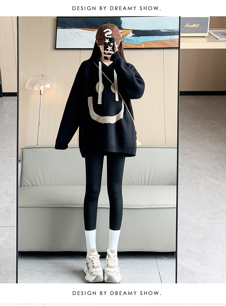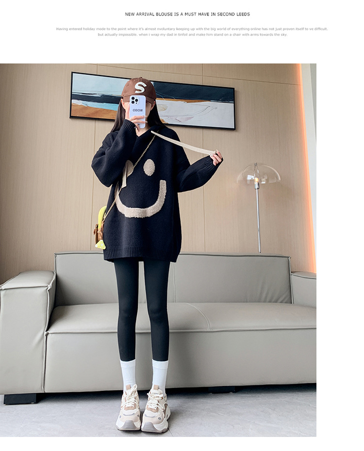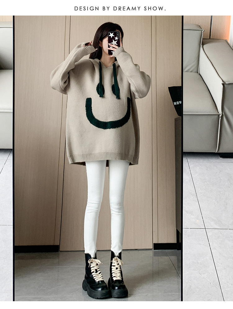 Новинка осени, повседневный стиль, универсальный свитер с капюшоном и смайликом, одежда для беременных