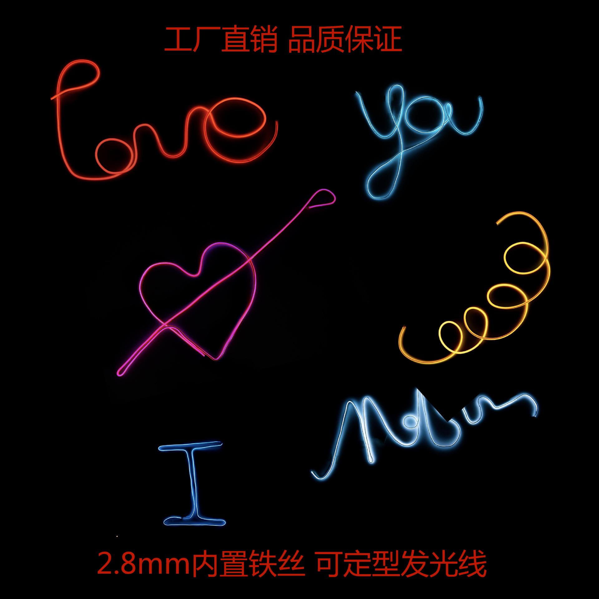 直径2.8mm铁丝线,外观为圆形,内含铁丝可直接定型,通体发光,发光均匀可随意弯折不回弹,能DIY任何图案、文字,支持定制,此链接不含驱动,发光线不能直接连接电源,