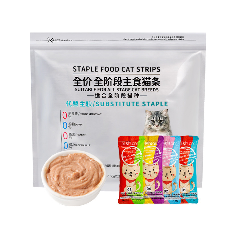 Корм для кошек Ishtar, полнорационный, в полосках, оптом, 50 г, лакомства для животных, питательный влажный корм для кошек, консервы, эксклюзивная поставка для трансграничной торговли