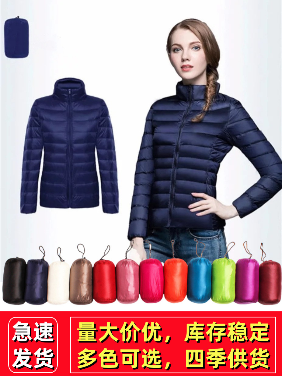 [Европейский и американский большой размер] 2024, новый легкий пуховик, женский пуховик на белом утином пуху с воротником-стойкой, женская короткая куртка