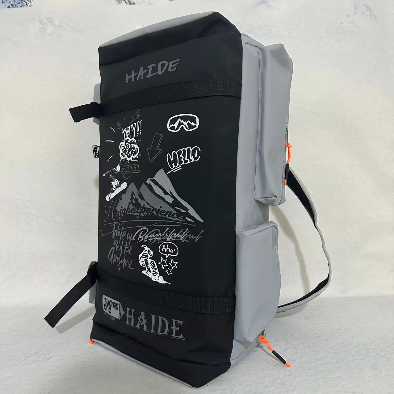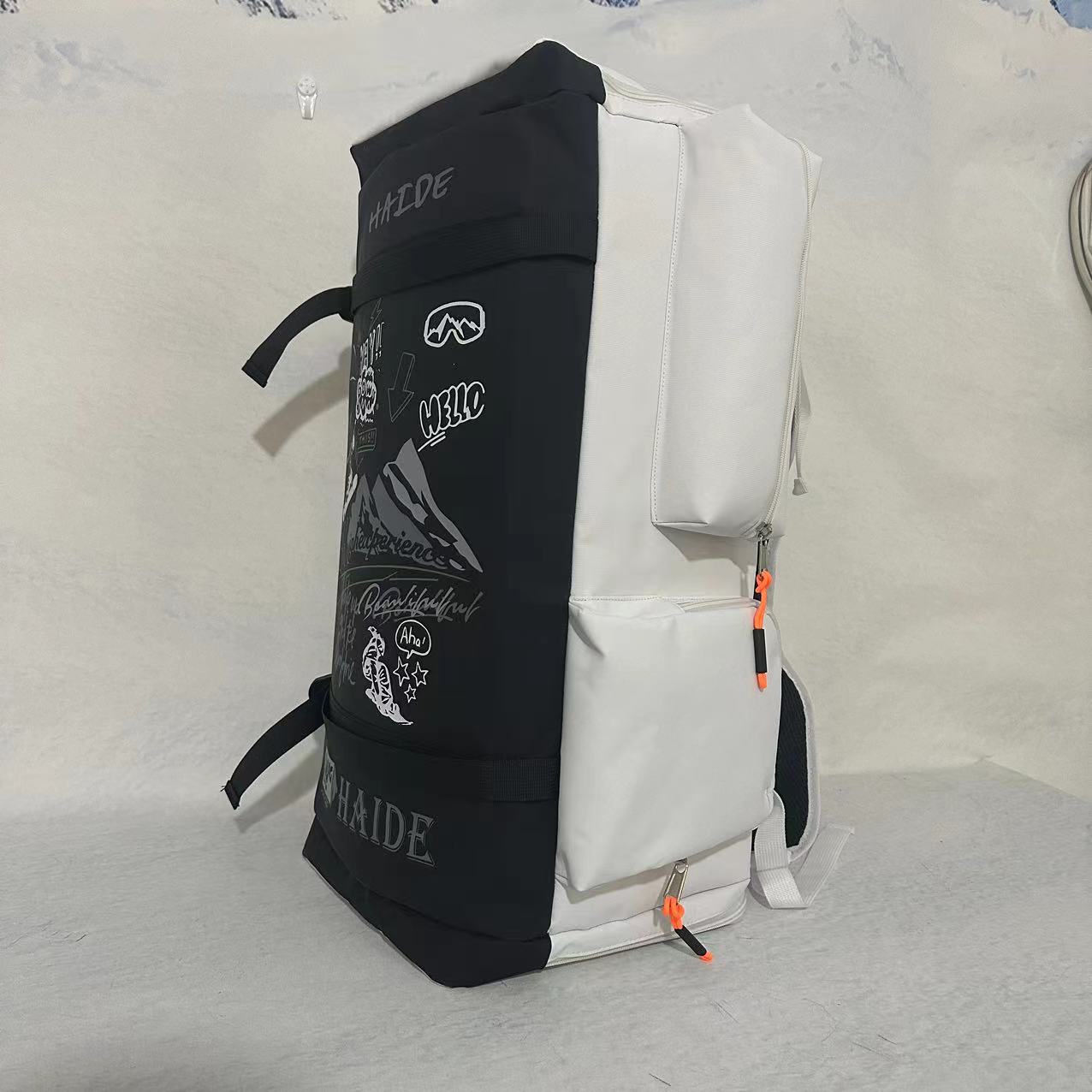 Лыжный рюкзак Большой емкости Лыжная сумка Рюкзак с граффити Независимая корзина для обуви Отдельная сумка для сухой и влажной снегоступы Сумка для зимней одежды