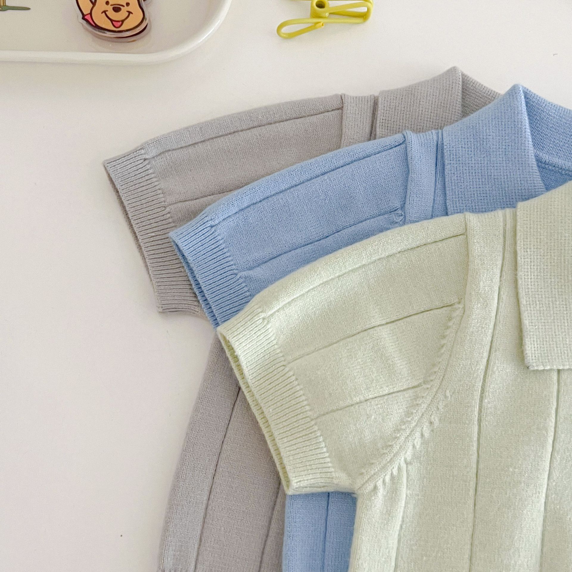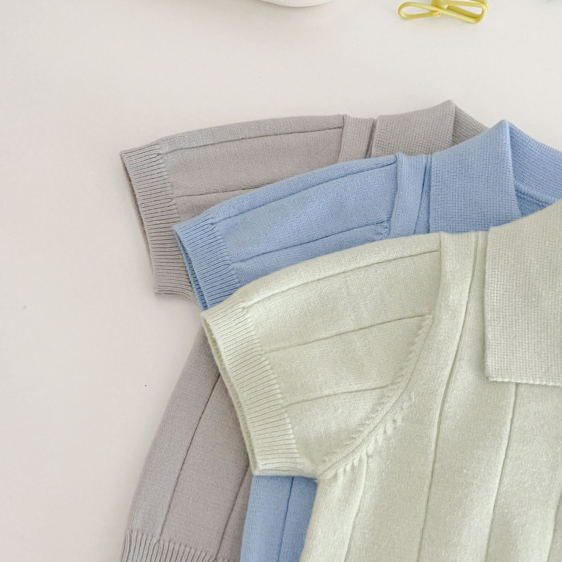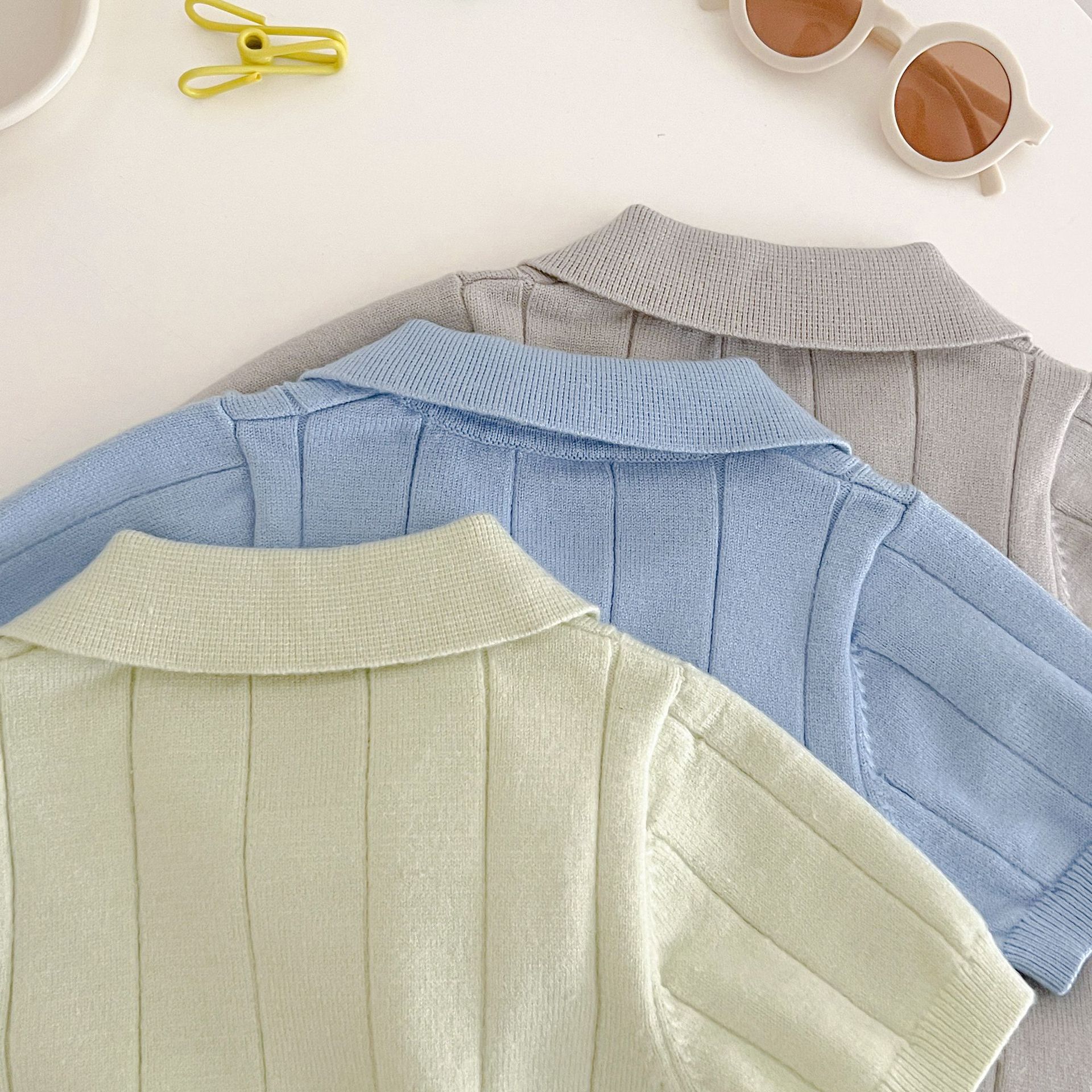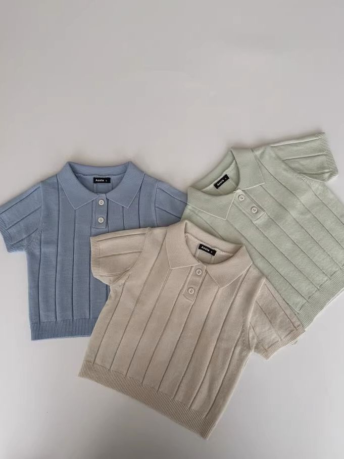 Весенне-летняя коллекция 2025 года: тонкая летняя кофта-пуловер из ледяного шелка для младенцев и малышей с отложным воротником.