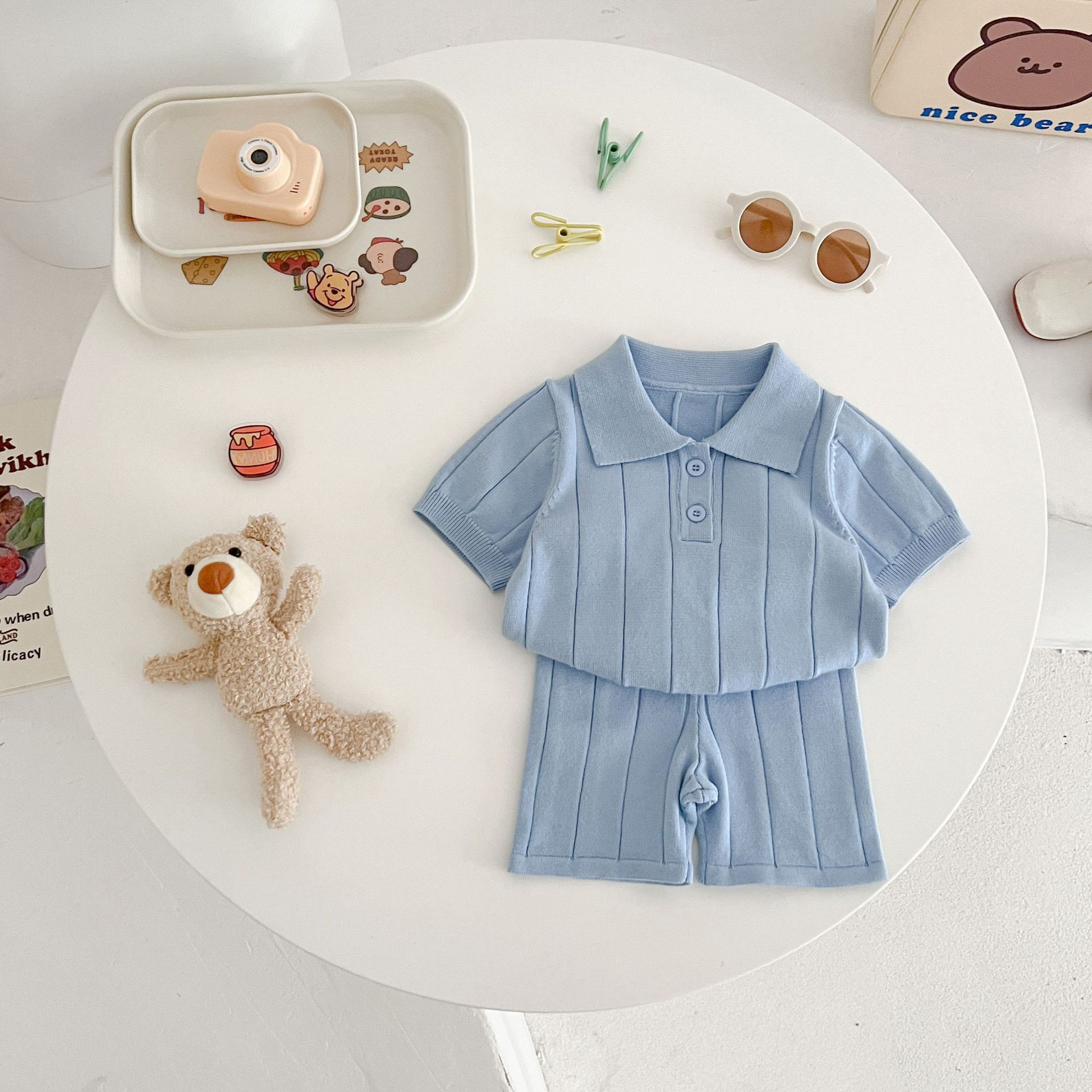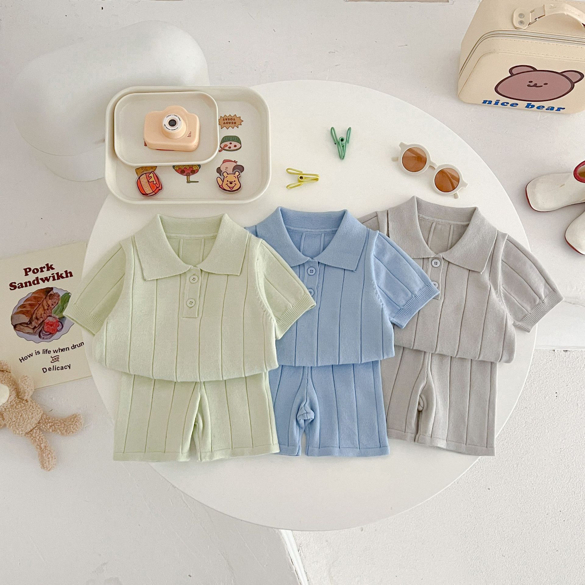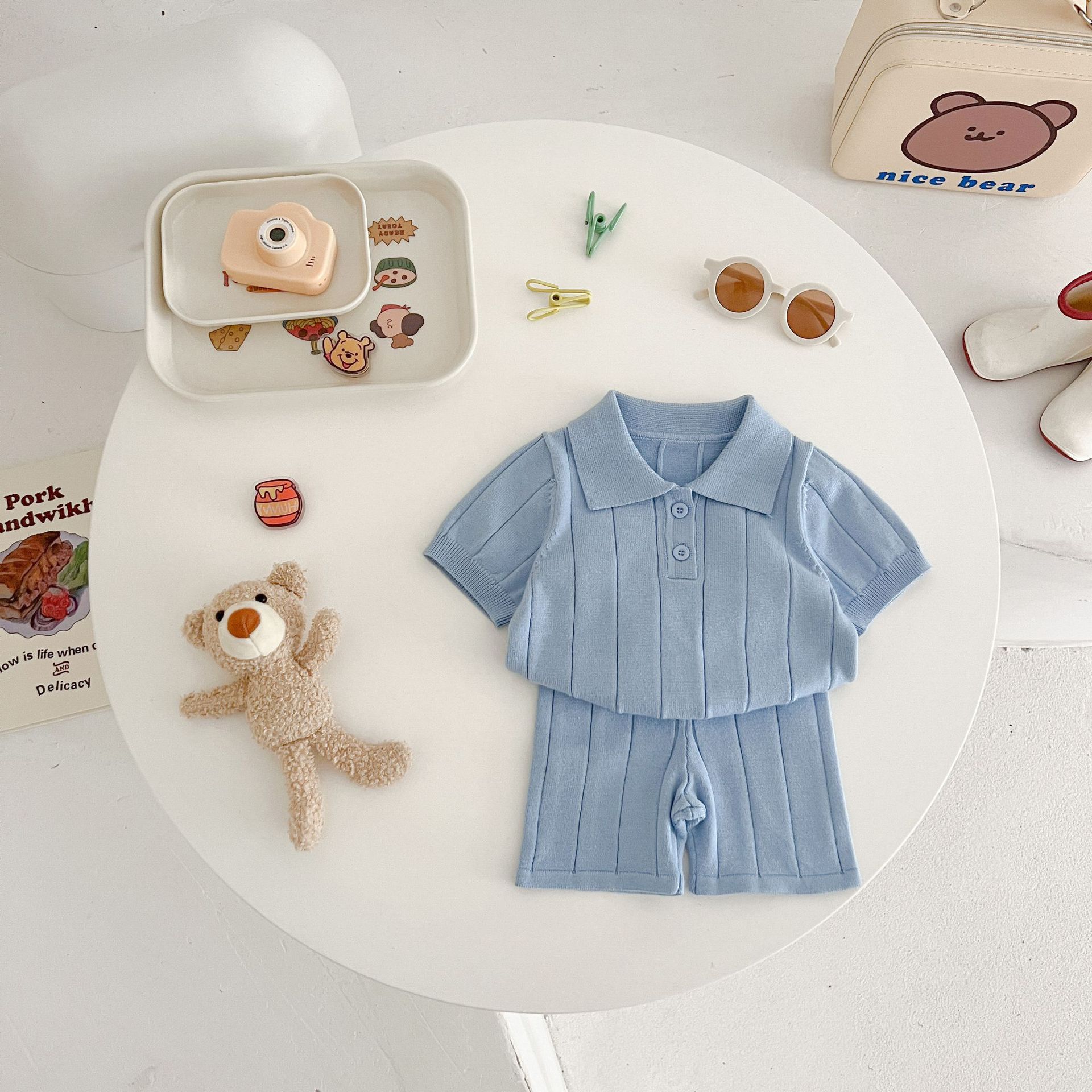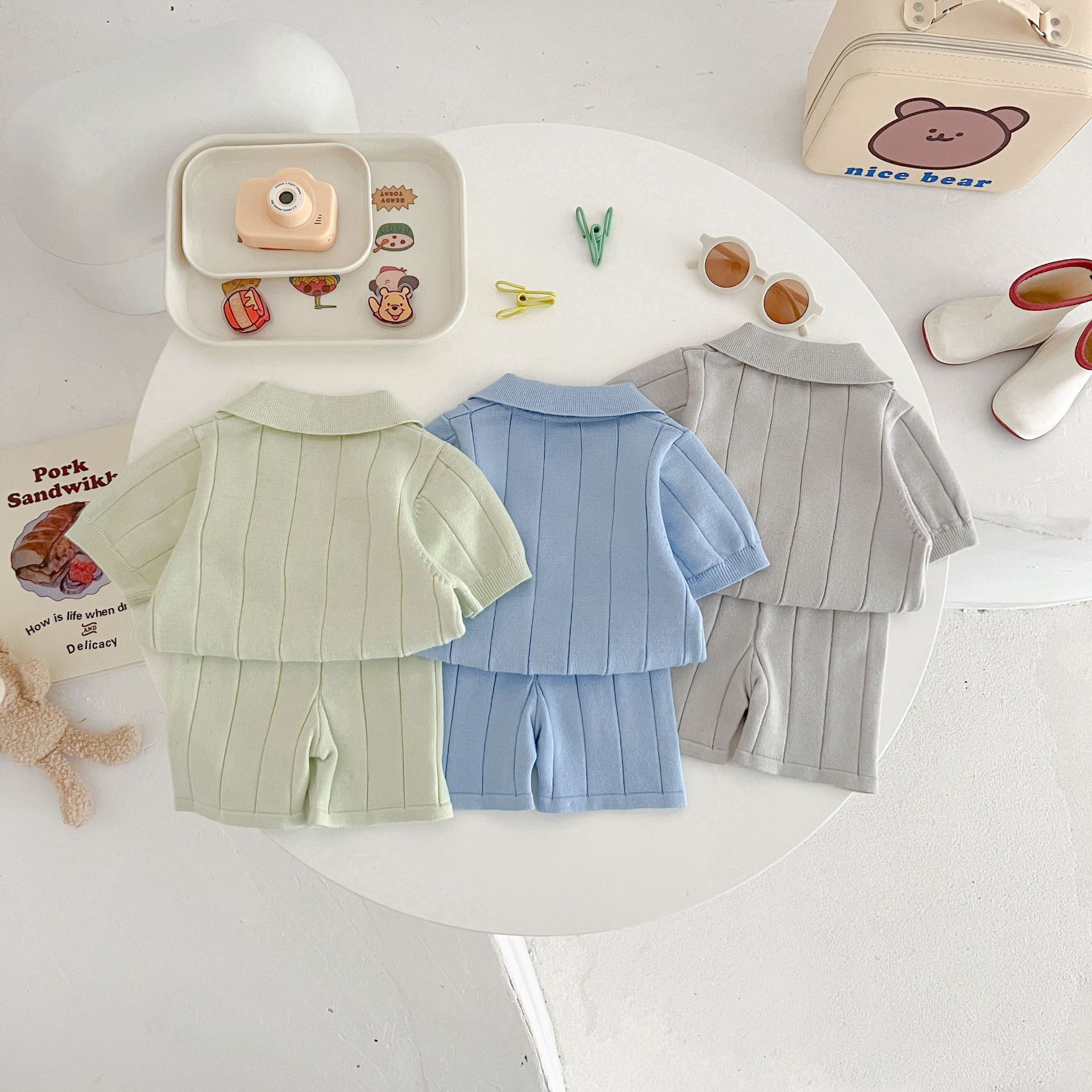 Весенне-летняя коллекция 2025 года: тонкая летняя кофта-пуловер из ледяного шелка для младенцев и малышей с отложным воротником.