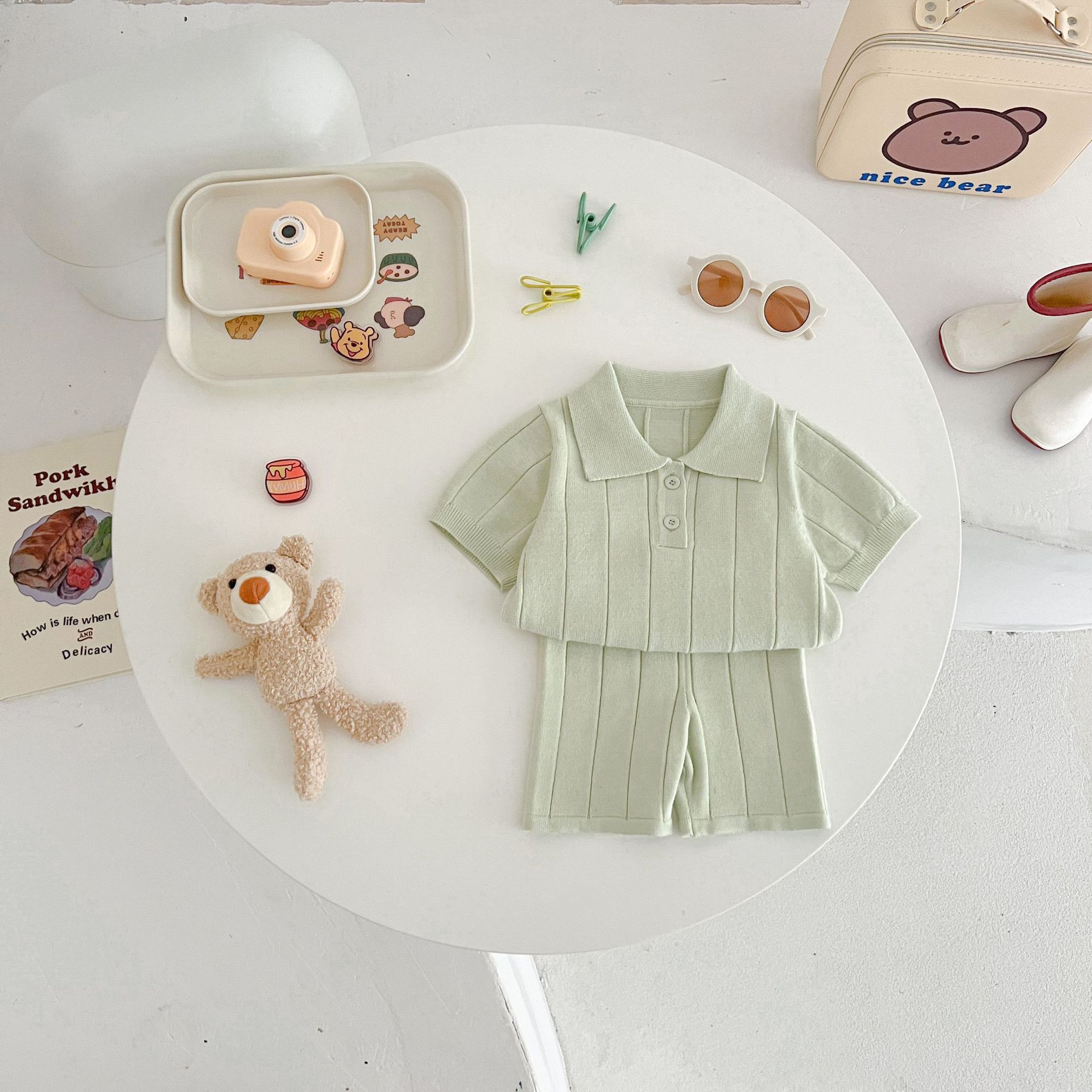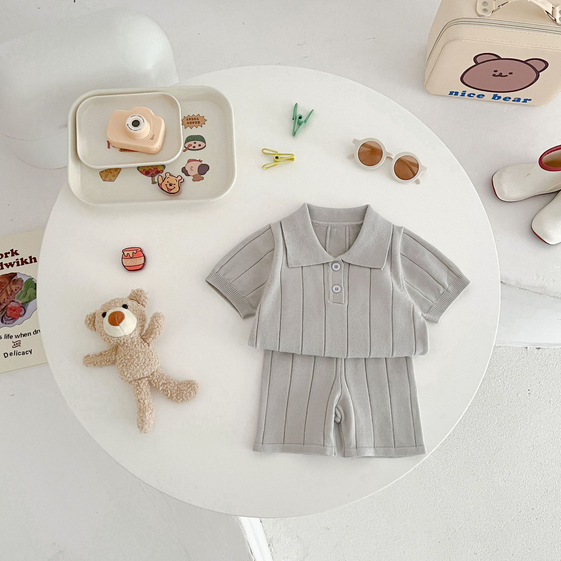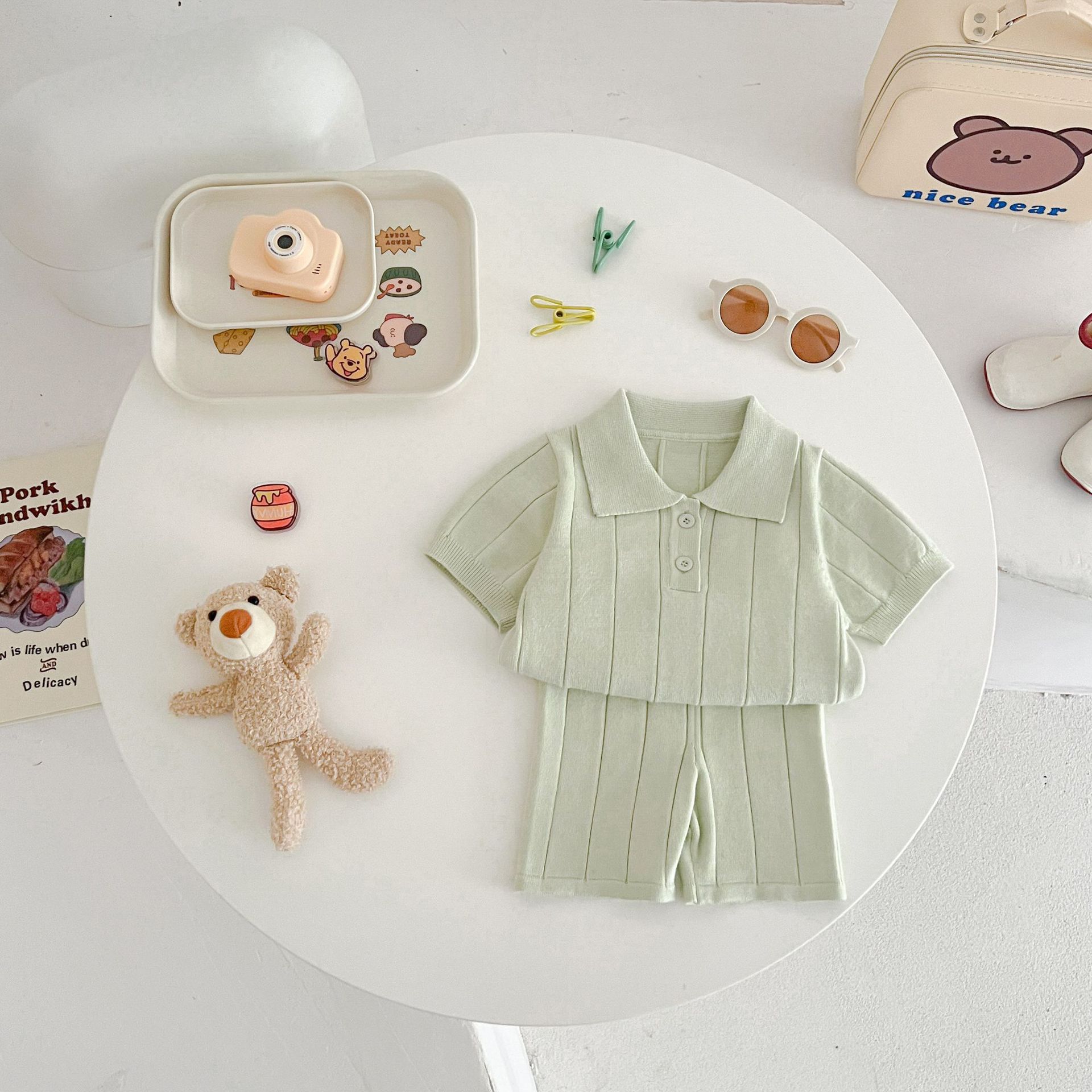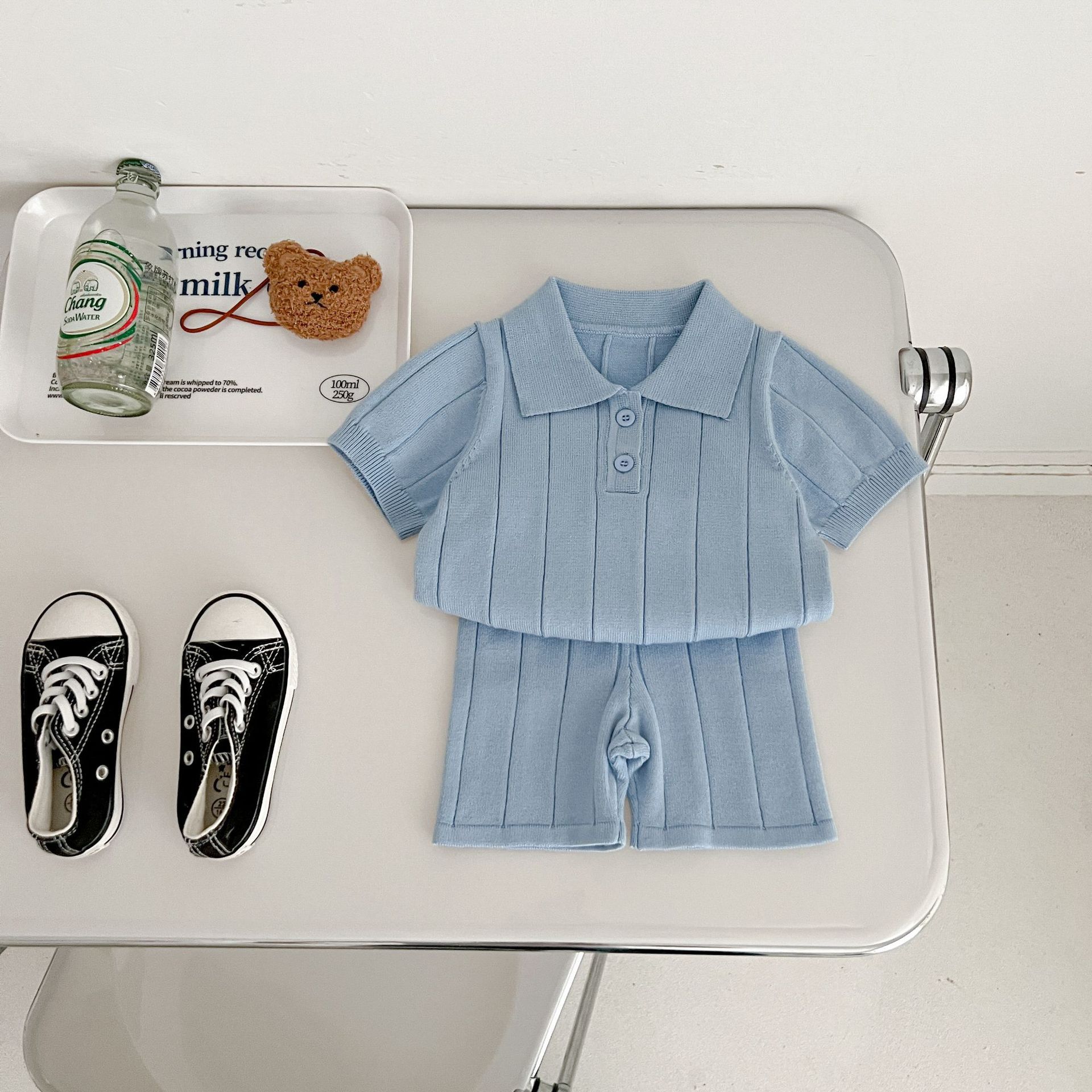 Весенне-летняя коллекция 2025 года: тонкая летняя кофта-пуловер из ледяного шелка для младенцев и малышей с отложным воротником.
