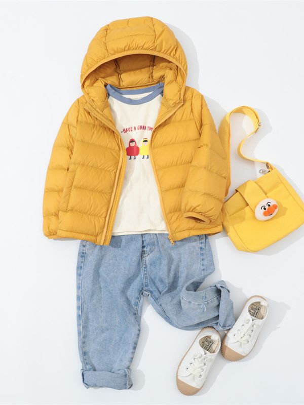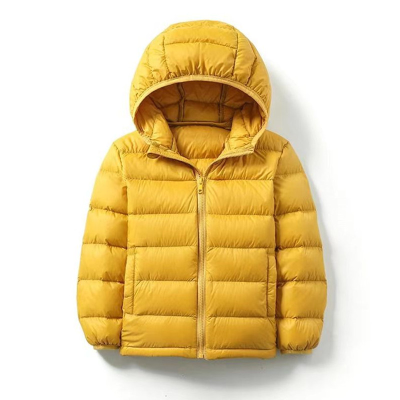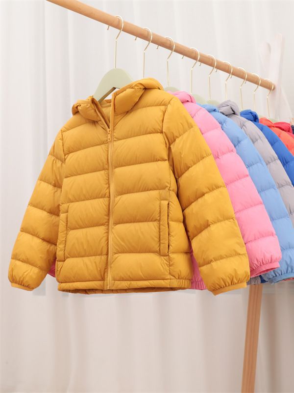 Трансграничный осенне-зимний Новый Детский пуховик с капюшоном, Детская короткая куртка для мальчиков и девочек среднего и большого размера, легкая теплая бархатная куртка 90 дюймов