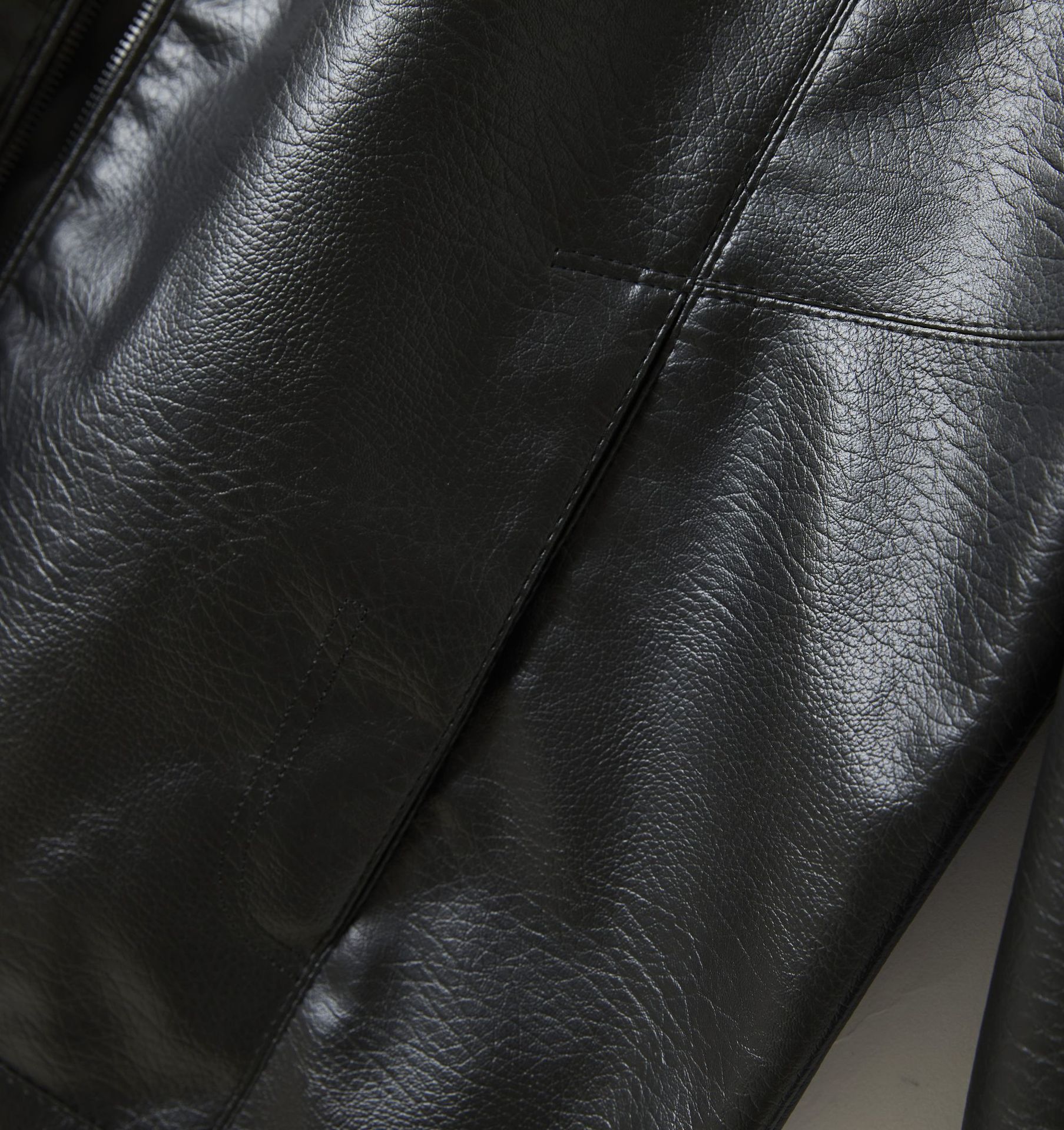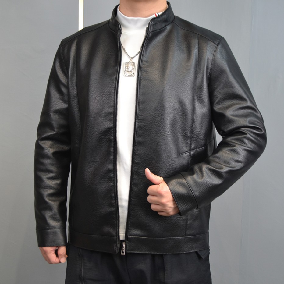 Мужская кожаная куртка с воротником-стойкой, тонкая осенне-зимняя новинка, кожаная куртка Haining, мужская бархатная утепленная куртка среднего возраста, мужская